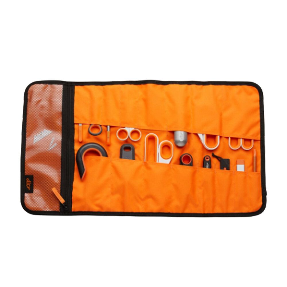 Rolovací pouzdro na nářadí Slice 10478 zajistí, aby Vaše nástroje byly vždy připravené k použití i za pochodu. Elegantní minimalistický styl tohoto pouzdra je moderní a zároveň praktický. Toto rolovací pouzdro na nářadí má 16 vnitřních kapes s vyztuženými švy a pod nimi také velkou kapsu na zip. Do této kapsy si můžete odkládat například malé součástky nebo ohebné věci jako rukavice. Díky průhlednému vyztuženému okénku u kapsy vždy snadno najdete, co potřebujete.