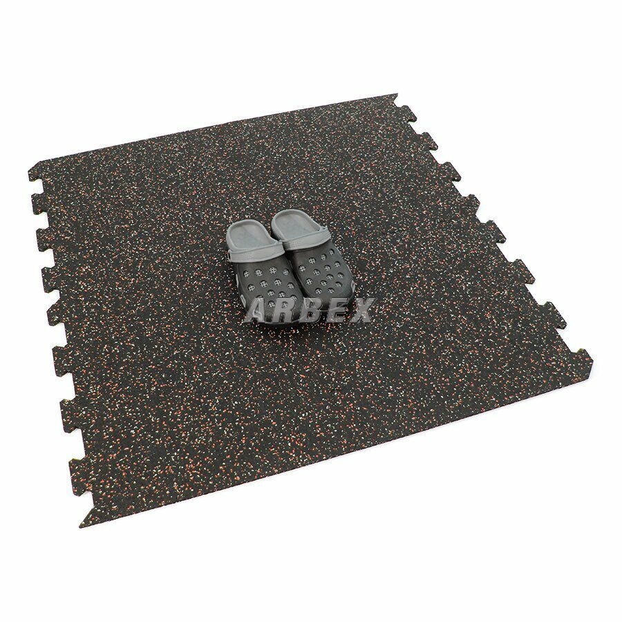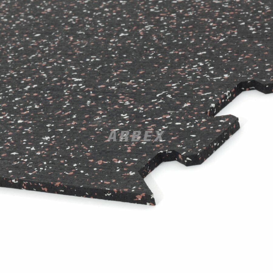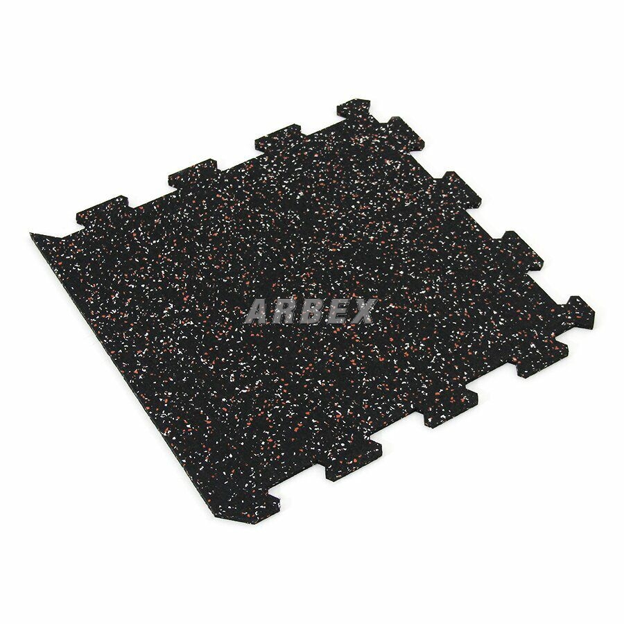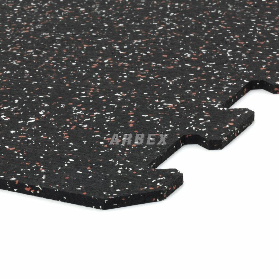 Gumová dlažba (modulová podlaha) FLOMA FitFlo SF1050 s příměsí 5+5% EPDM barevného granulátu v provedení 5% bílá + 5% červená je ideální podlahou do domácích posiloven a fitness (profesionální fitness centra obvykle volí výšku 1,6 cm). Velice dobře absorbuje nárazy, pády při cvičení, zmírňují dopady činek a cvičícího nářadí. Nespornou výhodou materiálu je také šetrnost ke kloubnímu aparátu cvičence. Tato gumová podlahovina se dá použít jako celoplošná podlaha do domacích fitness, jako pochůzné plochy v posilovnách, jako podložky pod cvičící stroje, odkládací plochy pro činky a další.