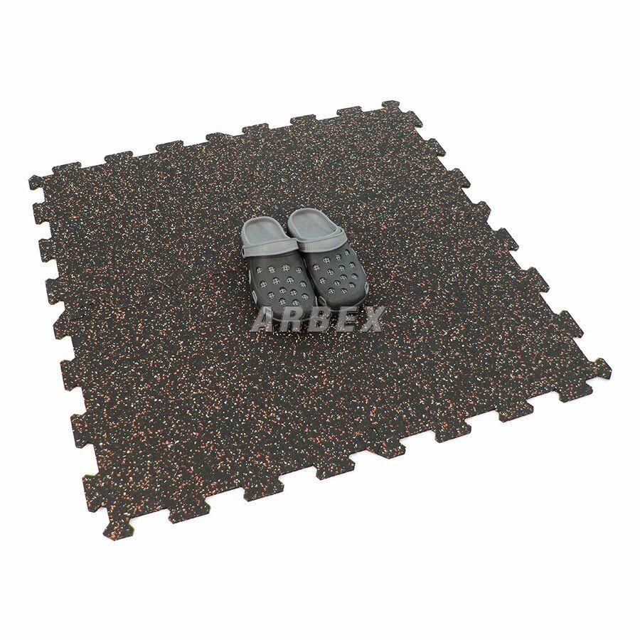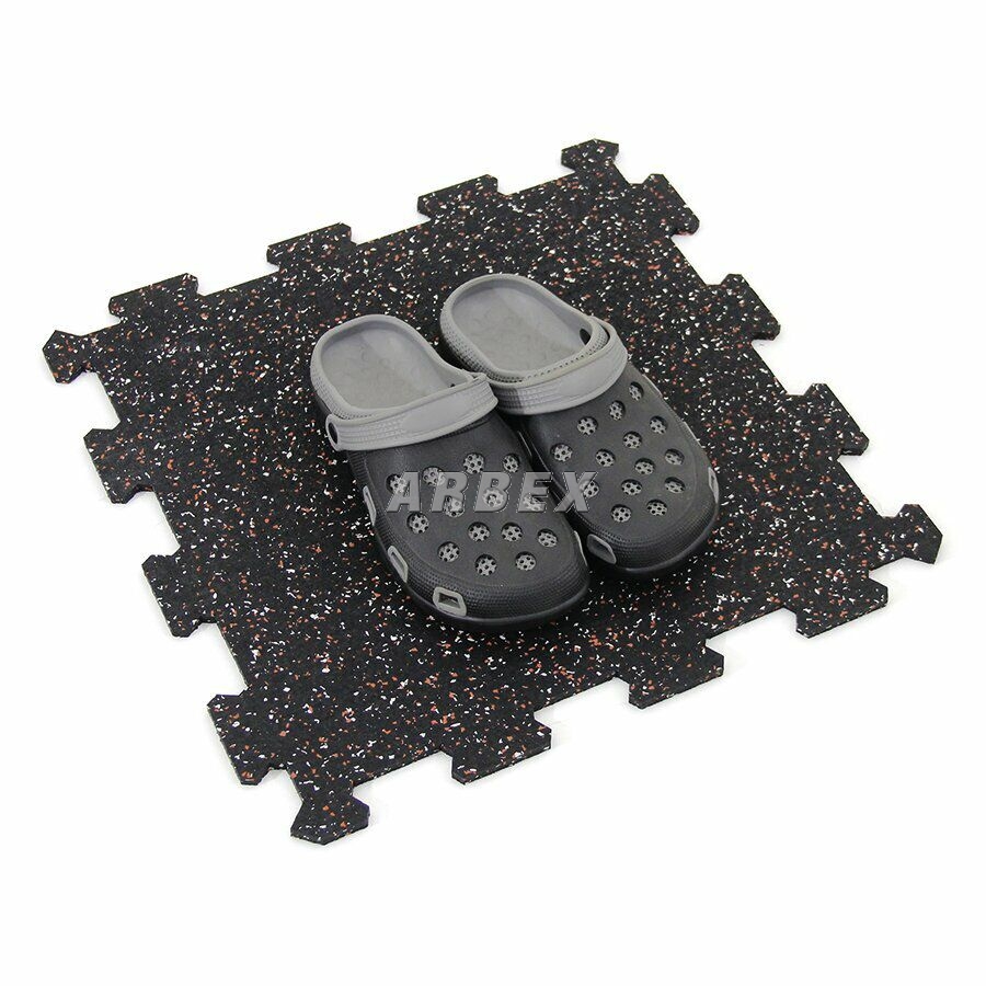 Gumová dlažba (modulová podlaha) FLOMA FitFlo SF1050 s příměsí 5+5% EPDM barevného granulátu v provedení 5% bílá + 5% červená je ideální podlahou do domácích posiloven a fitness (profesionální fitness centra obvykle volí výšku 1,6 cm). Velice dobře absorbuje nárazy, pády při cvičení, zmírňují dopady činek a cvičícího nářadí. Nespornou výhodou materiálu je také šetrnost ke kloubnímu aparátu cvičence. Tato gumová podlahovina se dá použít jako celoplošná podlaha do domacích fitness, jako pochůzné plochy v posilovnách, jako podložky pod cvičící stroje, odkládací plochy pro činky a další.