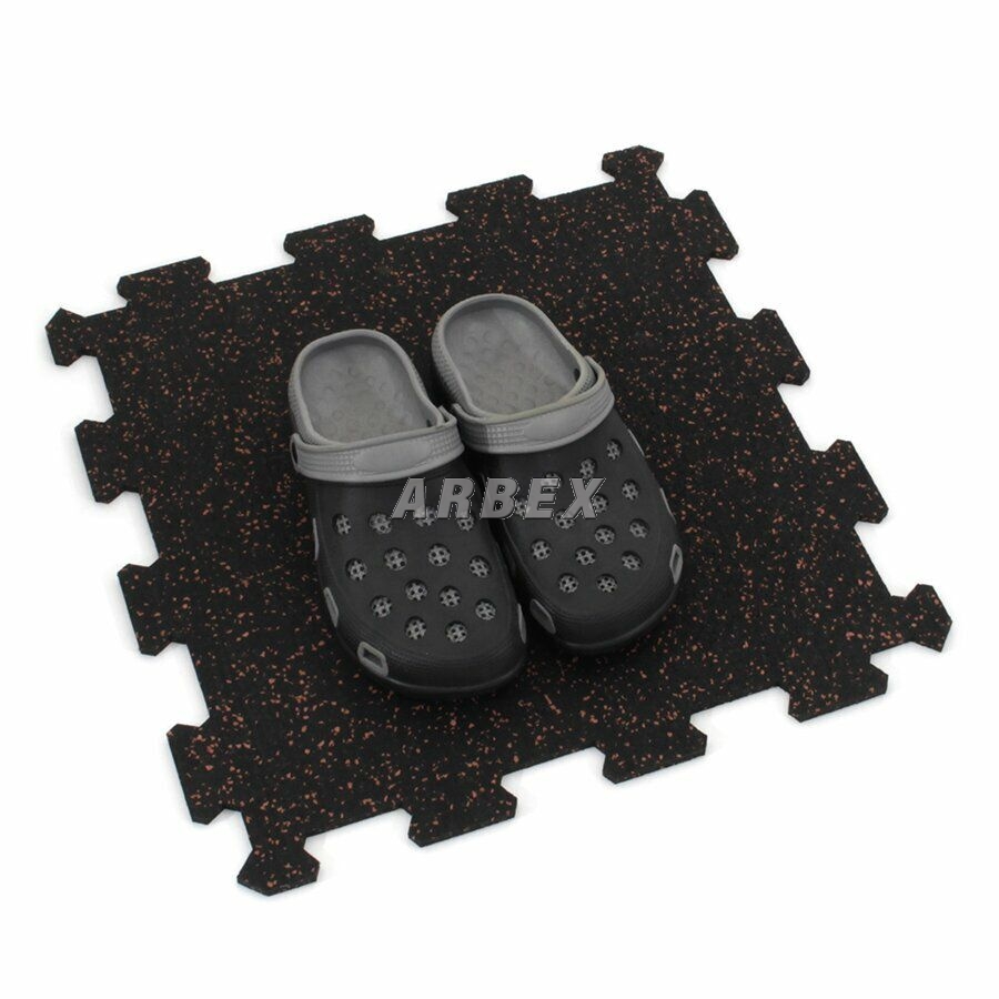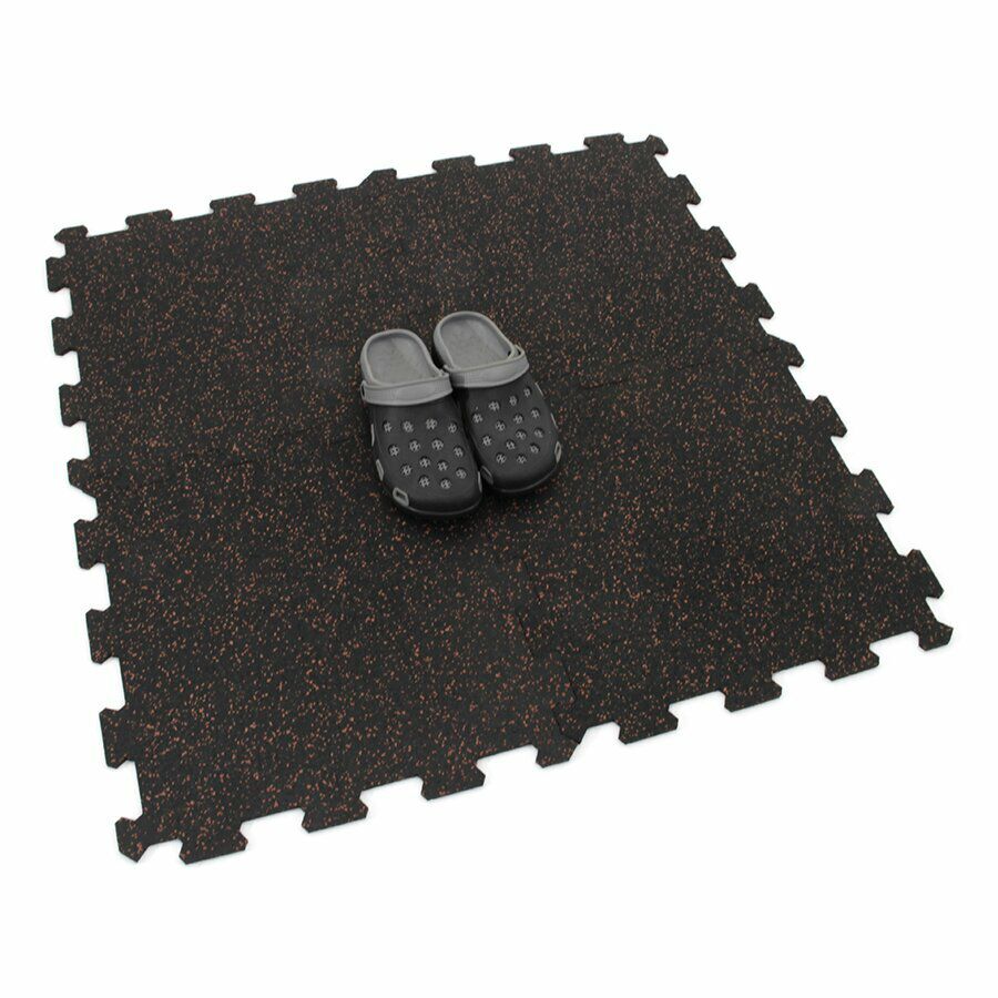 Gumová dlažba (modulová podlaha) FLOMA FitFlo SF1050 s příměsí 10% EPDM barevného granulátu v provedení 10% červená je ideální podlahou do domácích posiloven a fitness (profesionální fitness centra obvykle volí výšku 1,6 cm). Velice dobře absorbuje nárazy, pády při cvičení, zmírňují dopady činek a cvičícího nářadí. Nespornou výhodou materiálu je také šetrnost ke kloubnímu aparátu cvičence. Tato gumová podlahovina se dá použít jako celoplošná podlaha do domacích fitness, jako pochůzné plochy v posilovnách, jako podložky pod cvičící stroje, odkládací plochy pro činky a další.