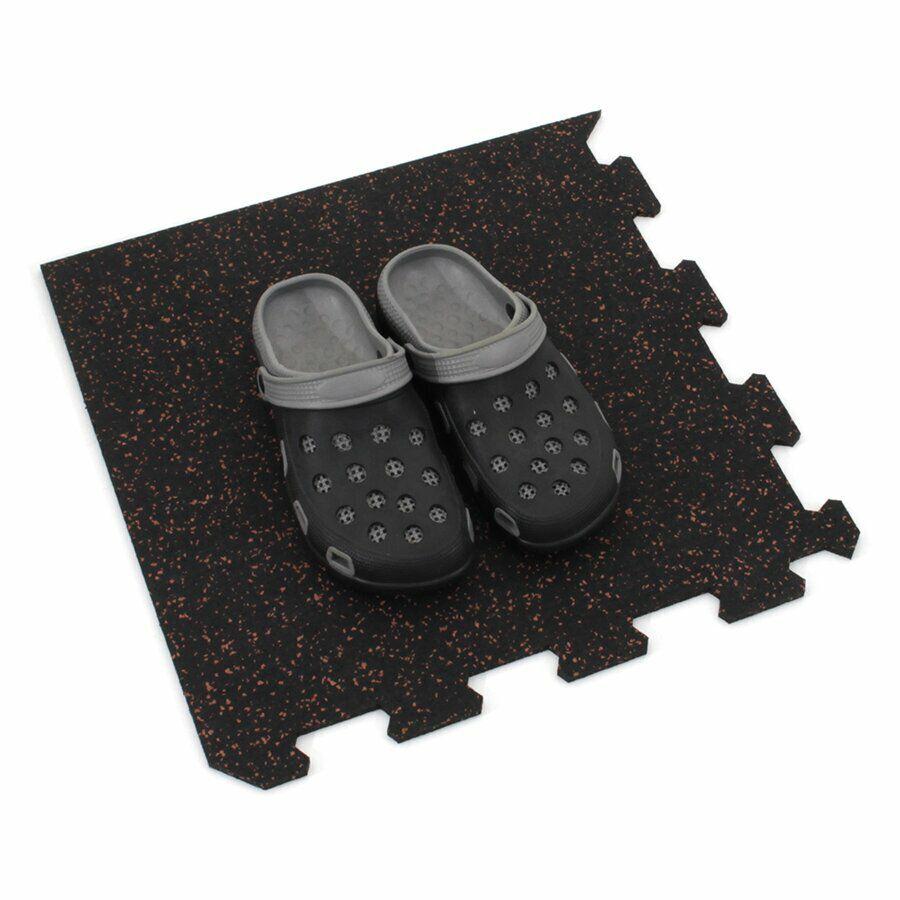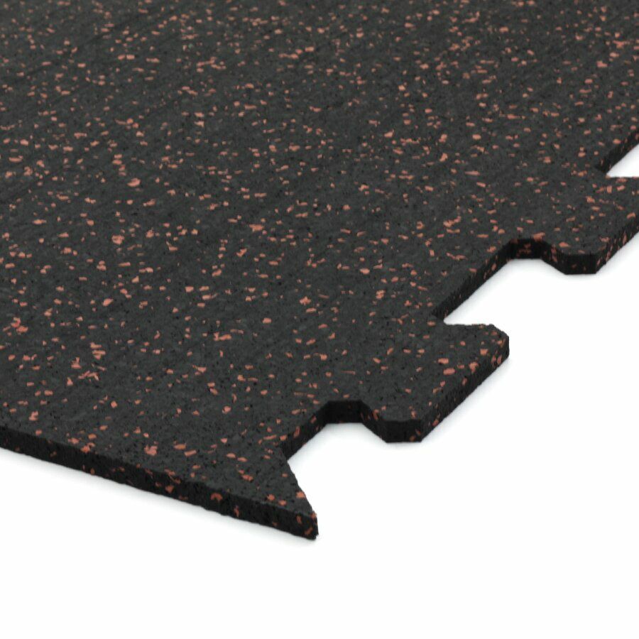 Gumová dlažba (modulová podlaha) FLOMA FitFlo SF1050 s příměsí 10% EPDM barevného granulátu v provedení 10% červená je ideální podlahou do domácích posiloven a fitness (profesionální fitness centra obvykle volí výšku 1,6 cm). Velice dobře absorbuje nárazy, pády při cvičení, zmírňují dopady činek a cvičícího nářadí. Nespornou výhodou materiálu je také šetrnost ke kloubnímu aparátu cvičence. Tato gumová podlahovina se dá použít jako celoplošná podlaha do domacích fitness, jako pochůzné plochy v posilovnách, jako podložky pod cvičící stroje, odkládací plochy pro činky a další.