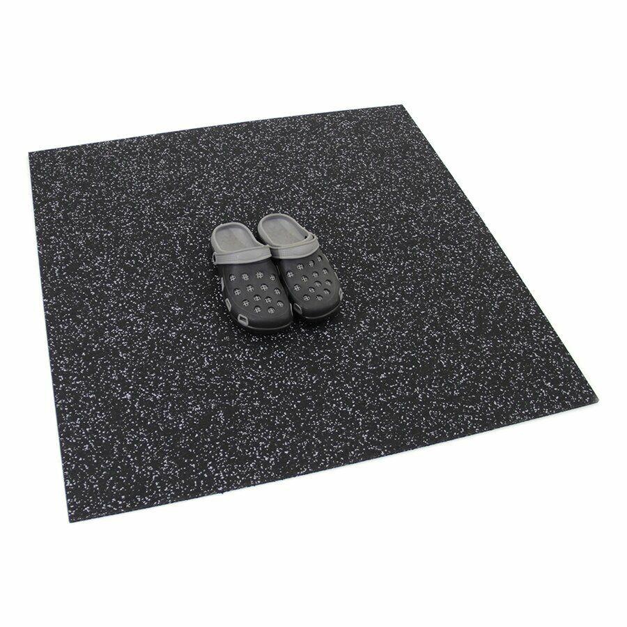 Gumová dlažba (modulová podlaha) FLOMA FitFlo SF1050 s příměsí 10% EPDM barevného granulátu v provedení 10% bílá je ideální podlahou do domácích posiloven a fitness (profesionální fitness centra obvykle volí výšku 1,6 cm). Velice dobře absorbuje nárazy, pády při cvičení, zmírňují dopady činek a cvičícího nářadí. Nespornou výhodou materiálu je také šetrnost ke kloubnímu aparátu cvičence. Tato gumová podlahovina se dá použít jako celoplošná podlaha do domacích fitness, jako pochůzné plochy v posilovnách, jako podložky pod cvičící stroje, odkládací plochy pro činky a další.