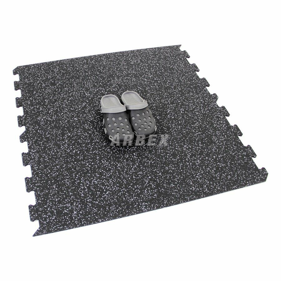 Gumová dlažba (modulová podlaha) FLOMA FitFlo SF1050 s příměsí 10% EPDM barevného granulátu v provedení 10% bílá je ideální podlahou do domácích posiloven a fitness (profesionální fitness centra obvykle volí výšku 1,6 cm). Velice dobře absorbuje nárazy, pády při cvičení, zmírňují dopady činek a cvičícího nářadí. Nespornou výhodou materiálu je také šetrnost ke kloubnímu aparátu cvičence. Tato gumová podlahovina se dá použít jako celoplošná podlaha do domacích fitness, jako pochůzné plochy v posilovnách, jako podložky pod cvičící stroje, odkládací plochy pro činky a další.