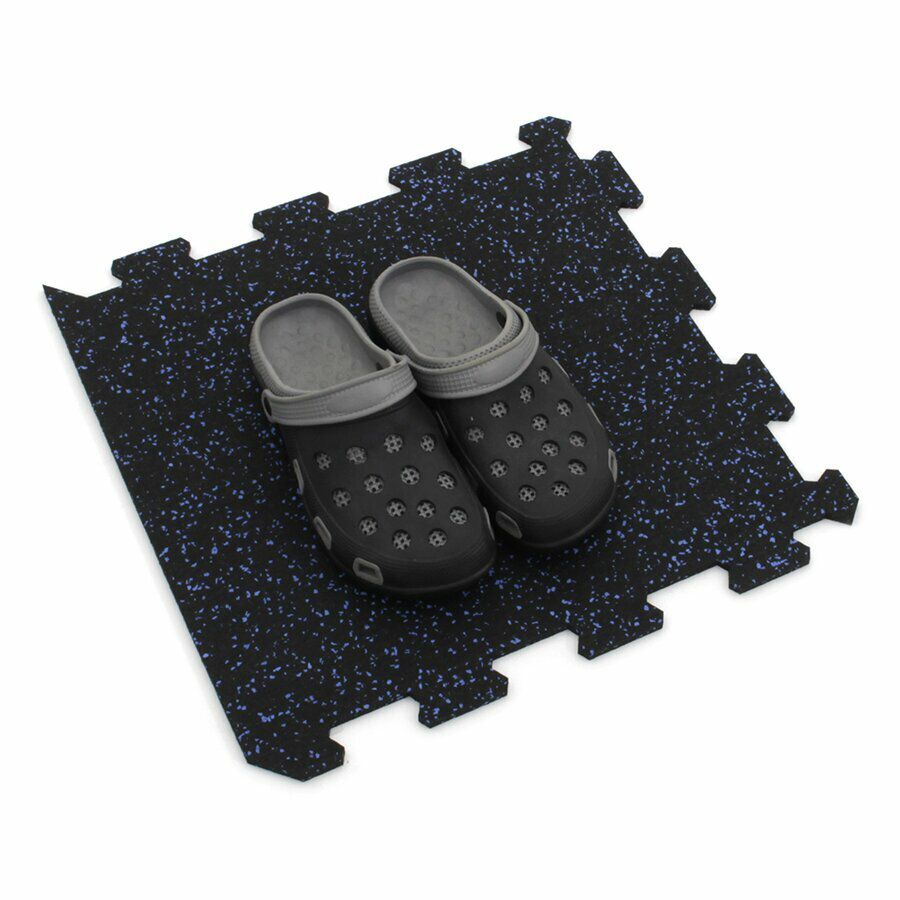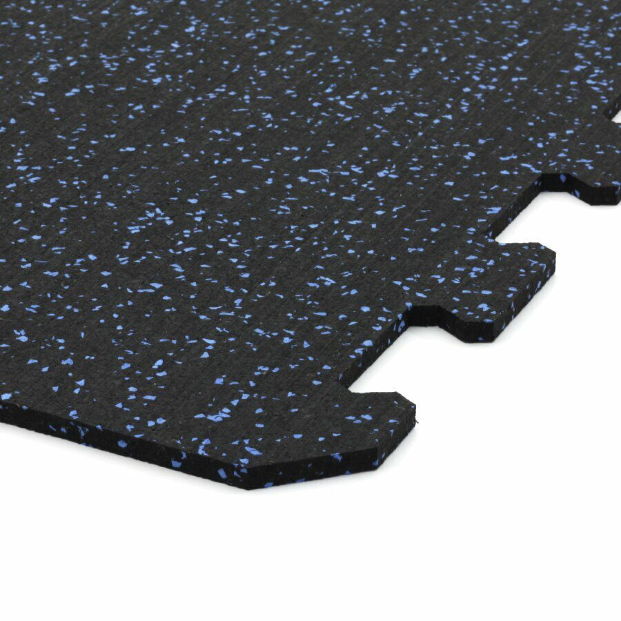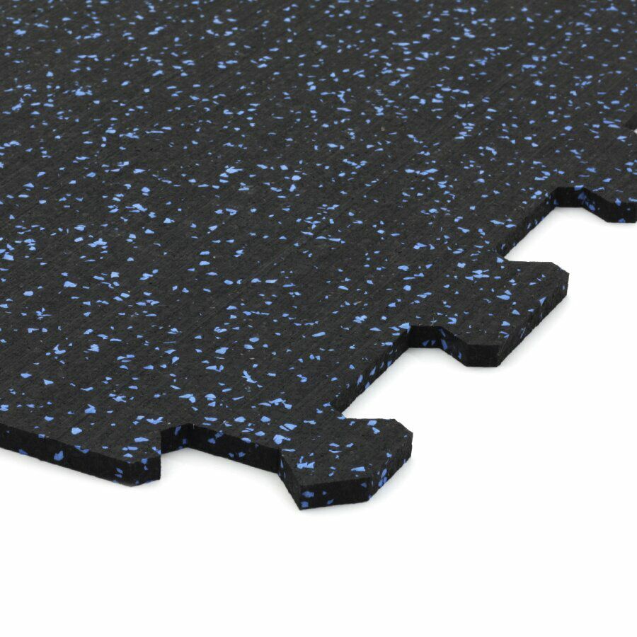 Gumová dlažba (modulová podlaha) FLOMA FitFlo SF1050 s příměsí 10% EPDM barevného granulátu v provedení 10% modrá je ideální podlahou do domácích posiloven a fitness (profesionální fitness centra obvykle volí výšku 1,6 cm). Velice dobře absorbuje nárazy, pády při cvičení, zmírňují dopady činek a cvičícího nářadí. Nespornou výhodou materiálu je také šetrnost ke kloubnímu aparátu cvičence. Tato gumová podlahovina se dá použít jako celoplošná podlaha do domacích fitness, jako pochůzné plochy v posilovnách, jako podložky pod cvičící stroje, odkládací plochy pro činky a další.