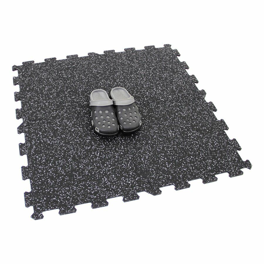 Gumová dlažba (modulová podlaha) FLOMA FitFlo SF1050 s příměsí 10% EPDM barevného granulátu v provedení 10% bílá je ideální podlahou do domácích posiloven a fitness (profesionální fitness centra obvykle volí výšku 1,6 cm). Velice dobře absorbuje nárazy, pády při cvičení, zmírňují dopady činek a cvičícího nářadí. Nespornou výhodou materiálu je také šetrnost ke kloubnímu aparátu cvičence. Tato gumová podlahovina se dá použít jako celoplošná podlaha do domacích fitness, jako pochůzné plochy v posilovnách, jako podložky pod cvičící stroje, odkládací plochy pro činky a další.