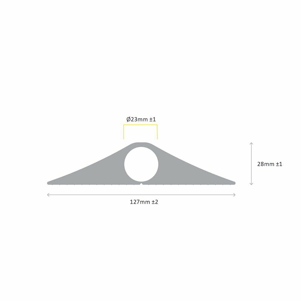 Kabelový most s drážkou pro 1 kabel slouží jako ochrana kabelů ve výrobních provozech, na výstavách, kulturních akcích atd. Tedy perfektní volbou pro ochranu kabelů v interiérech či exteriérech. Díky své šikmé hraně chrání kabely před kolovou dopravou jako jsou automobily a vysokozdvižné vozíky. Velký průměr kanálů o průměru 2,3 cm jsou vhodné pro vysoce namáhávé kabely. Nabízí vysokou nosnost, snadnou údržba, rychlou montáž a demontáž, protiskluznost a stabilitu. Tento kabelový most disponuje předřezanou štěrbinou na zadní straně pro snadné vkládání kabelů.