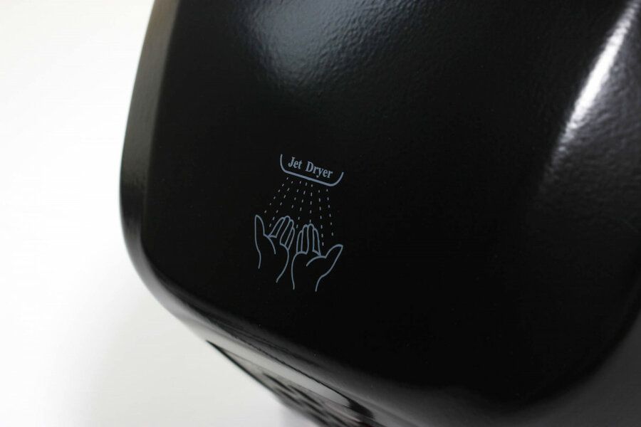 Kovový kryt vysoušeče je vyroben z jednoho kusu. 2 milimetry silný plech odolá každému vandalovi. Povrchová úprava umožňuje snadnou údržbu, osoušeč stačí utřít vlhkou utěrkou. Kryt je odolný proti poškození nešikovně odloženou cigaretou.