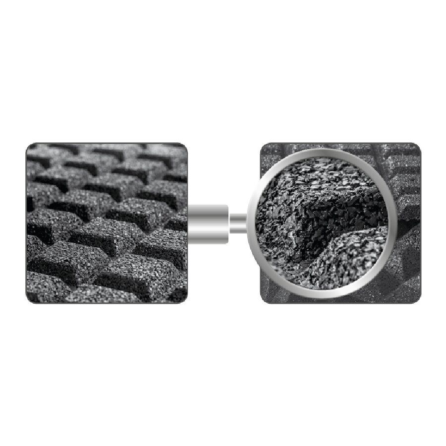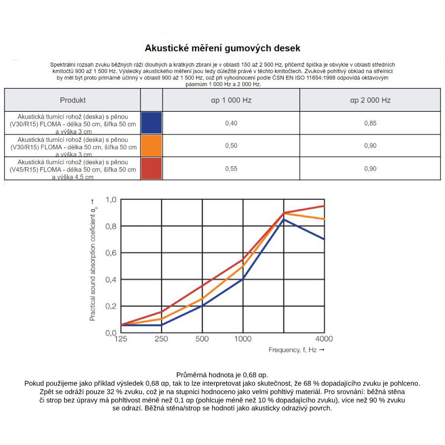 Tato rohož se skládá ze základny desky a rastru tvořeného řadami komolých jehlanů. U tohoto rozměru je deska složena z 1,5 cm vysoké základny a z 3 cm vysokých komolých jehlanů. Desky mají deklarované protiodrazové ?vlastnosti a splňují požadavky k použití jako protiodrazové (neodrazné) obklady ve smyslu ČSN 39 54 01. Díky použitému materiálu jenž vznikl na základě speciální receptury, splňuje tato rohož bezpečnostní požadavky pro použití na střelnicích.