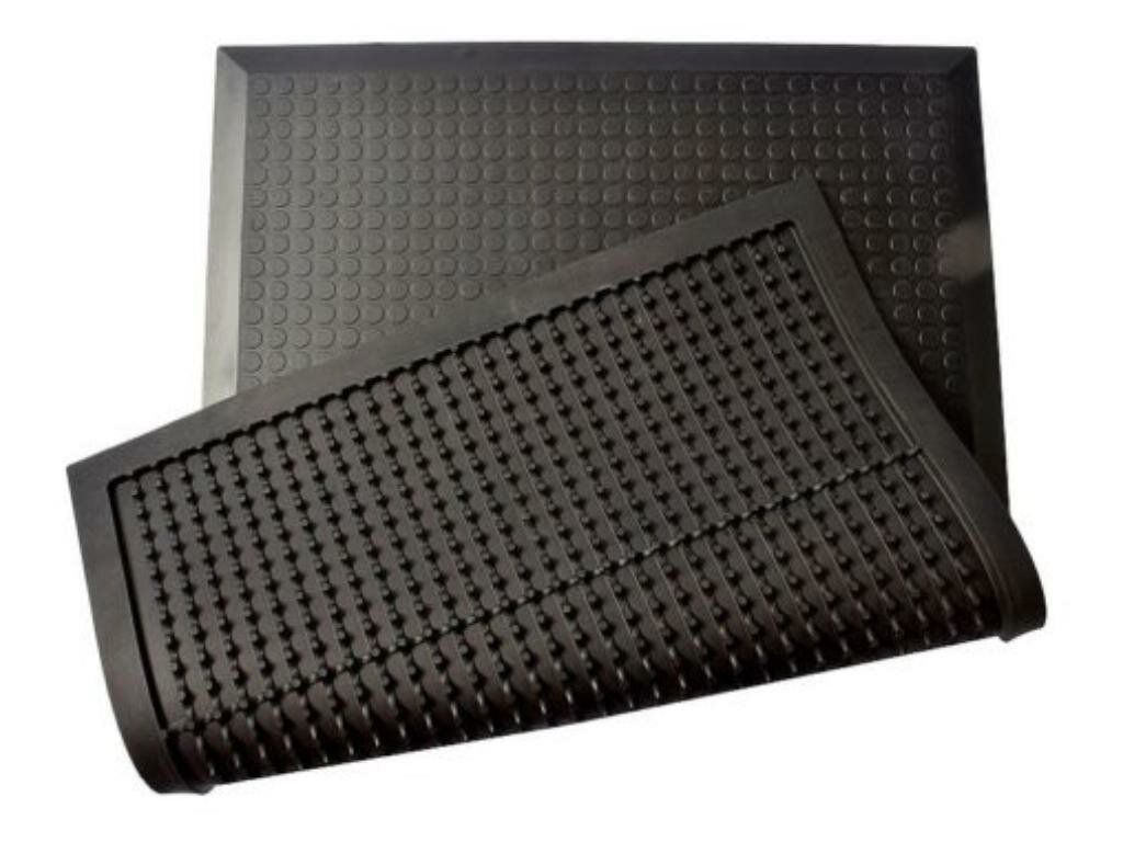 Rohož je vyrobena z NBR pryže (ne z PVC), proto vydrží více pochozích cyklů a má lepší odolnost vůči opotřebování. Po obvodu je rohož vybavená náběhovou hranou pro prevenci zakopnutí.