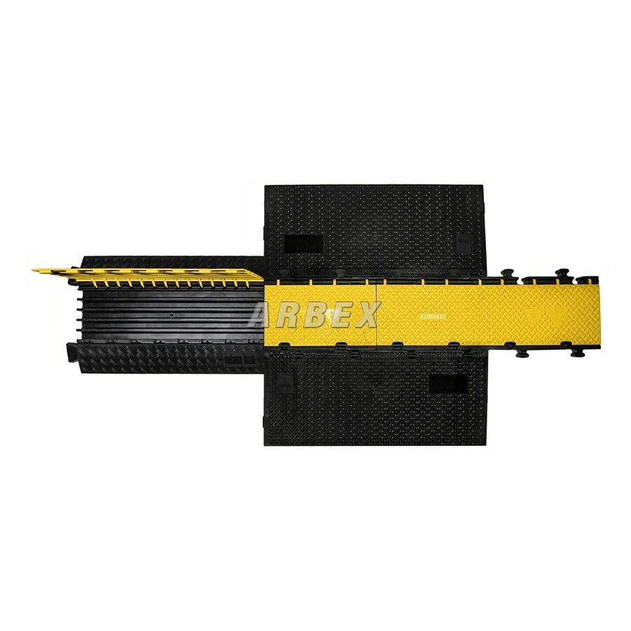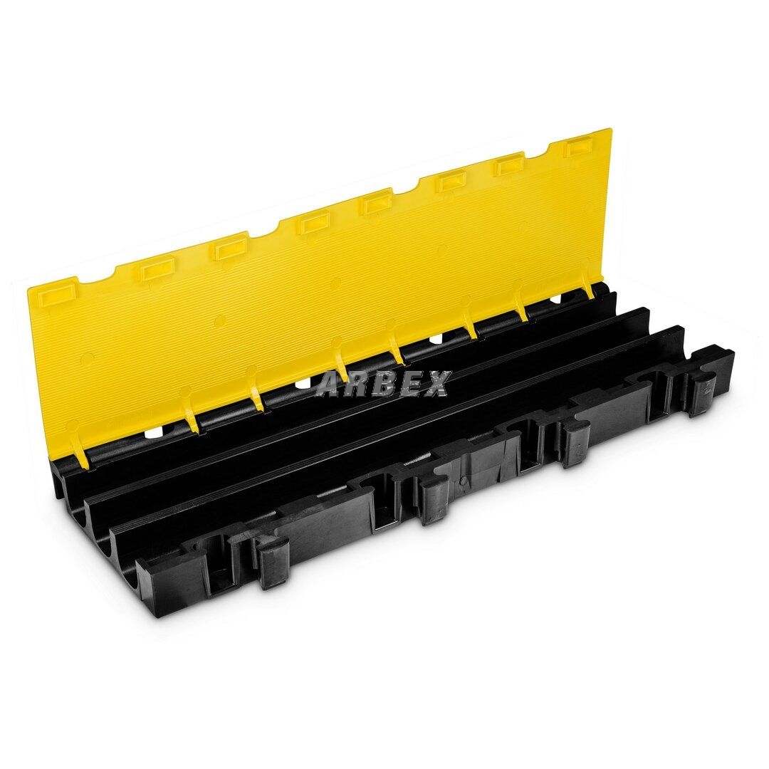 Kabelový most DEFENDER MIDI 2D M disponuje žlutým víkem a třemi kanály pro ochranu kabelů, hadic či trubek na chodnících, ve výrobních provozech, na výstavách, kulturních akcích, v kancelářích apod.