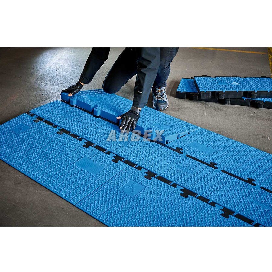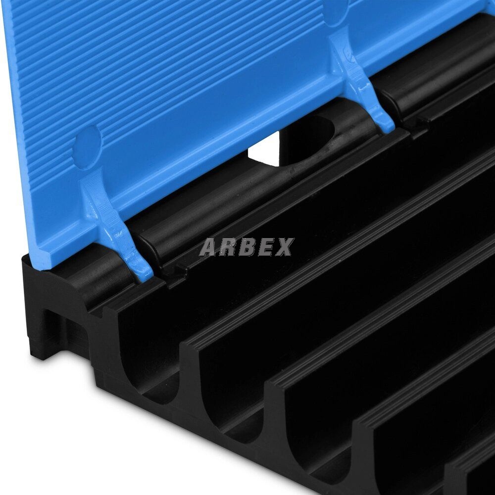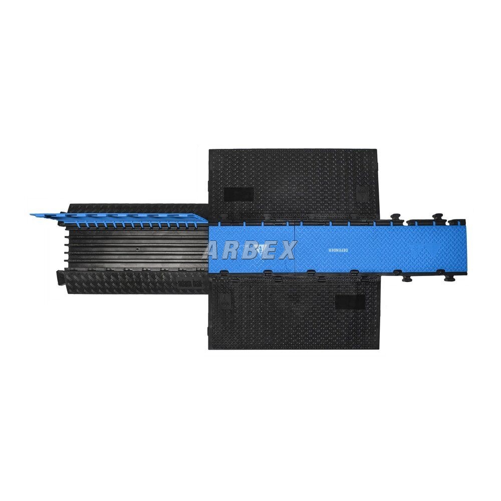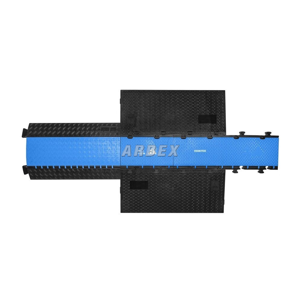 Kabelový most DEFENDER MIDI 5 2D HV disponuje modrým víkem a pěti kanály pro ochranu kabelů, hadic či trubek na chodnících, ve výrobních provozech, na výstavách, kulturních akcích, v kancelářích apod.