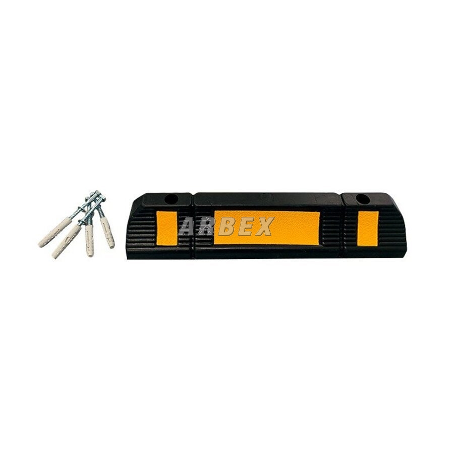 Černo-oranžový parkovací doraz z odolné pryže je určen pro bezpečné a přehledné ohraničení parkovacích míst i manipulačních prostor. Vyroben z homogenní tvrdé pryžové směsi, která zaručuje vysokou odolnost vůči mechanickému zatížení, deformaci i klimatickým vlivům.