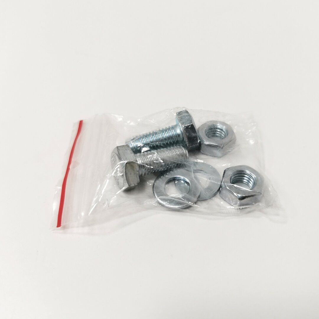 Upevňovací montážní šroub (sada) pro uchycení klimatizační jednotky či tepelného čerpadla ke gumovému antivibračnímu podstavci obsahuje 2x šroub M10, 2x podložka, 2x matice.