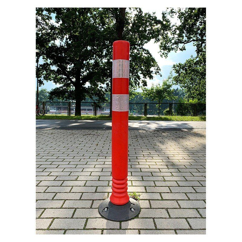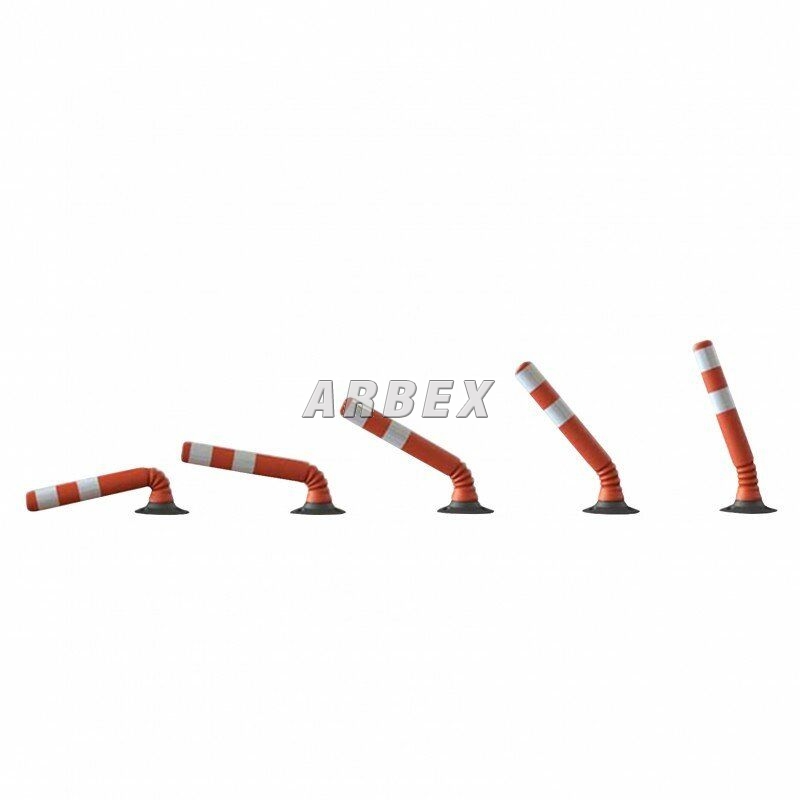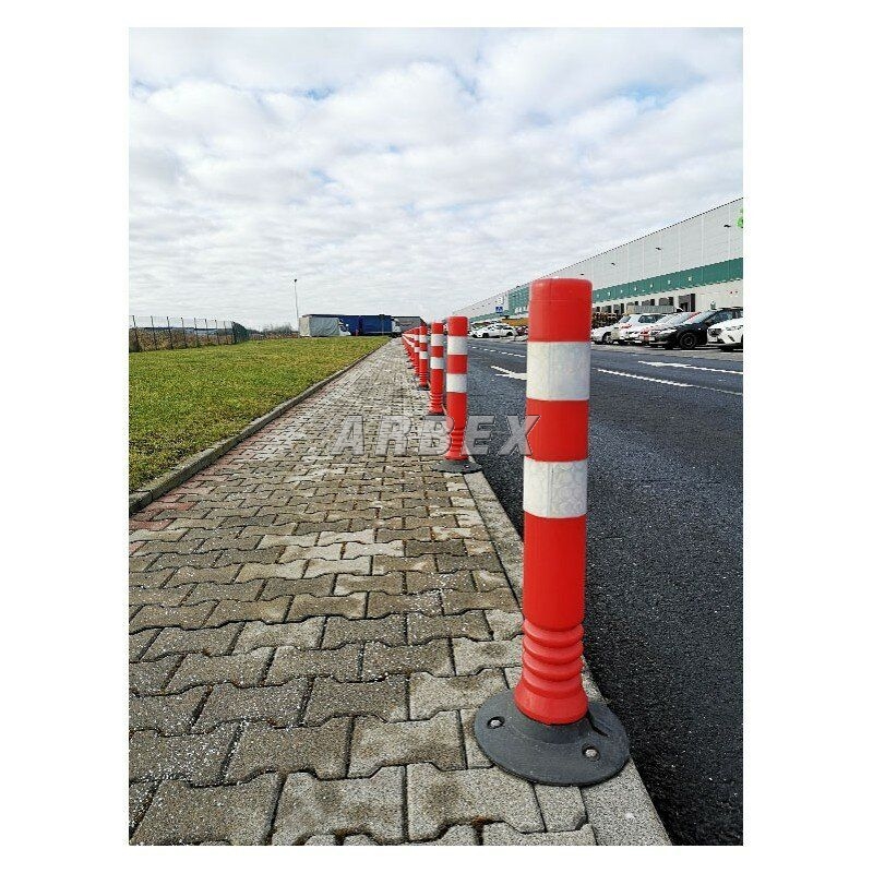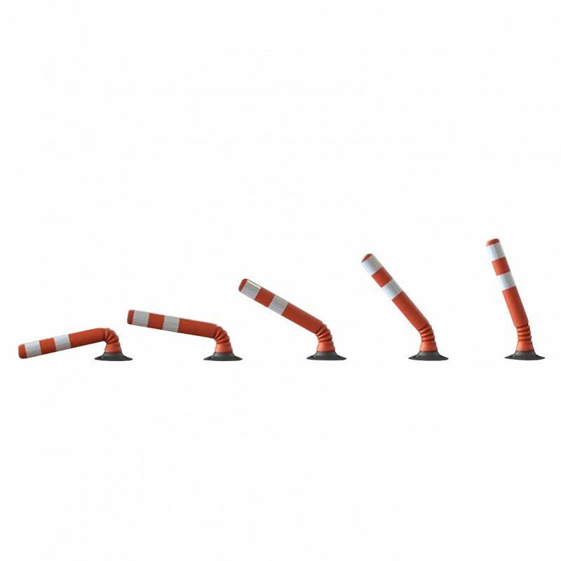 Červený parkovací sloupek Flexi s reflexními pruhy, účinně eliminující sílu nárazu. Jsou vyrobeny s vysoce odolného, průžného materiálu, který se pod tlakem vychyluje a deformuje, poté se vrátí do původní podoby. Flexi sloupky jsou dodávány s pryzovou základnou, která musí být připevněna k zemi. Kužely nezpůsobují promáčknutí ani škrábance na povrchu vozidla.