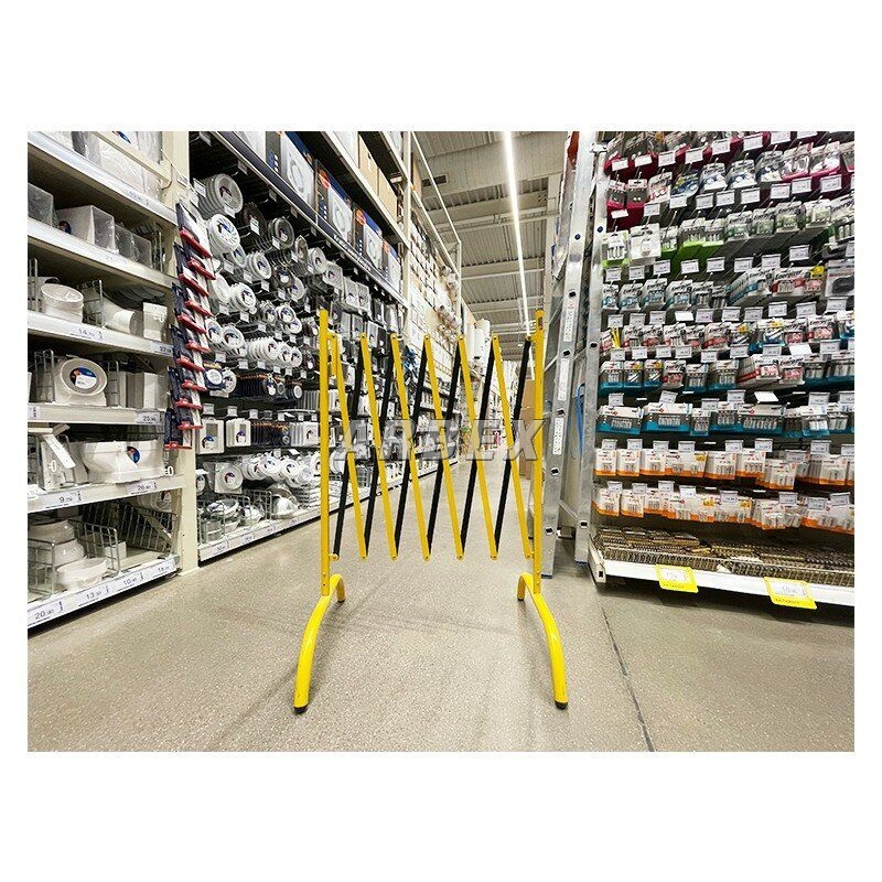 Černá a žlutá bariéra k oplocení dočasných zón. Vyrobena z vysoce kvalitní oceli. Bariéry mají stabilní nohy a ploché tyče, které jsou spojeny odolnými nýty. Nůžkové zábrany se snadno přepravují, přemisťují a používají. Označují uzavřené zóny, mimo provoz nebo s omezeným přístupem. V nabídce jsou bíle a červeně lakované ocelové zábrany (označené z obou stran reflexní fólií) nebo žluté a černé.
