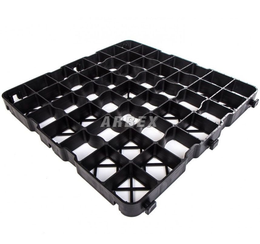 Plastová zatravňovací dlažba je vhodná zejména pro velká parkoviště, příjezdové cesty, požární přístupy, odstavné a skladovací plochy (je vhodná i pro těžké kamiony a pojezd manipulační technikou), průmyslové areály, odstavné plochy na letištích, apod. Díky tloušťce stěny 5 mm snese i bez výplně zatížení 300 t/m2. Vyplněním dlažby se nosnost ještě zvyšuje. Vnitřní stěny o tloušťce 5 mm zase zajišťují zvýšenou odolnost při pohybu těžkých vozidel a techniky.