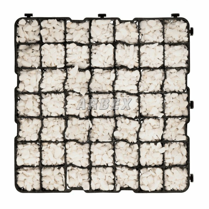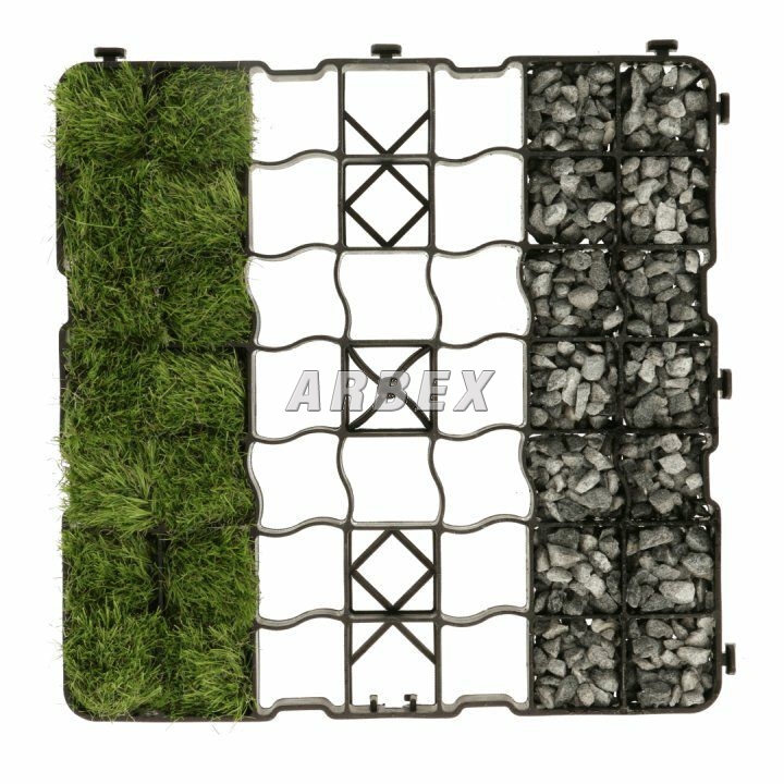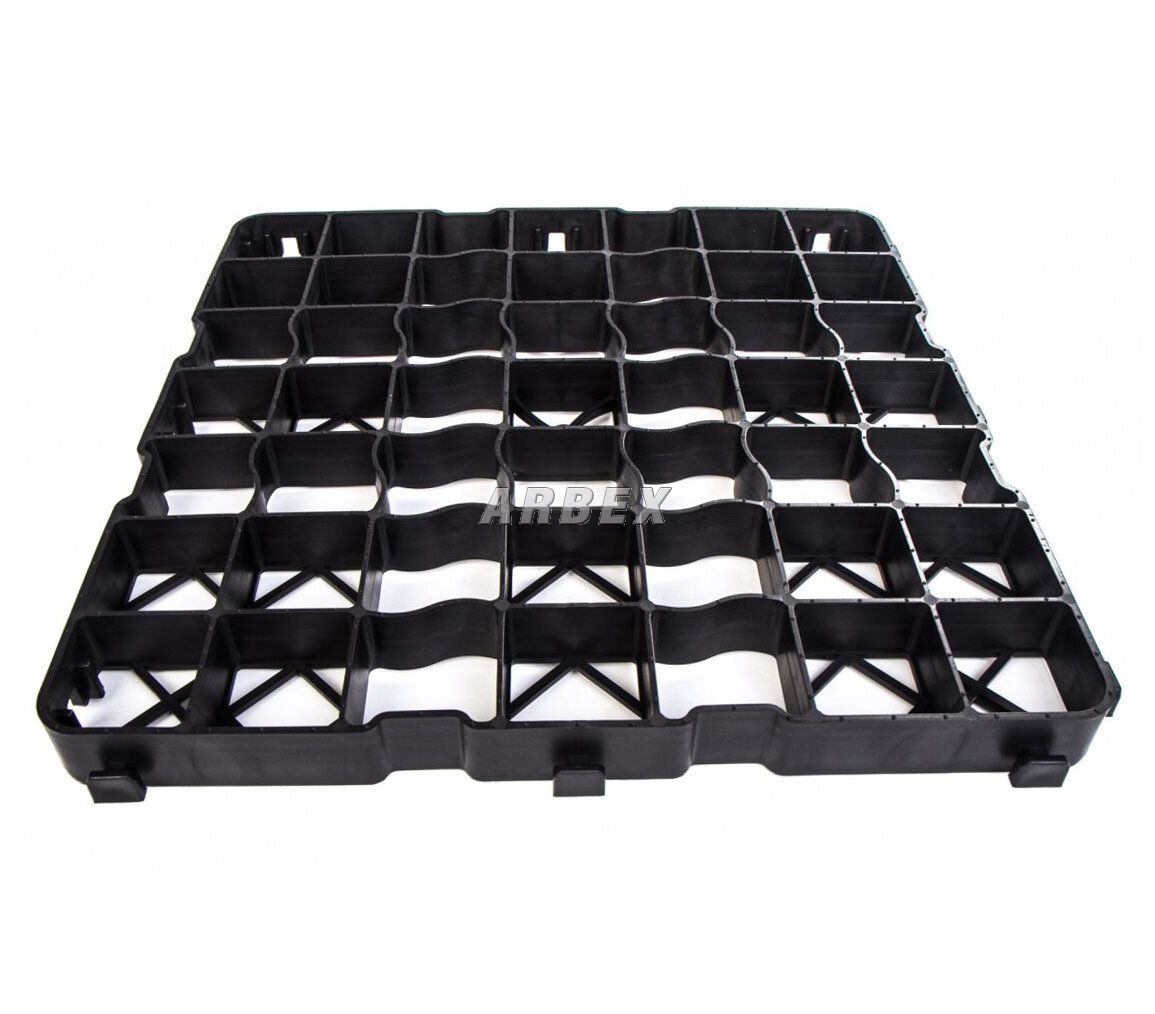 Jednotlivé dlaždice se navzájem spojují pevnými čepy a tak vytvářejí jednu spojitou plochu, která zajišťuje rovnoměrnější rozložení zatížení. To například omezuje vznik vyježděných kolejí od aut. Zatravňovací dlažba N50 je vysoká 5 cm, takže poskytuje více místa pro kořeny a je tak ideální pro zatravnění. Vhodná je ale i výplň štěrkem či jiným kamenivem, keramzitem, pískem, apod.