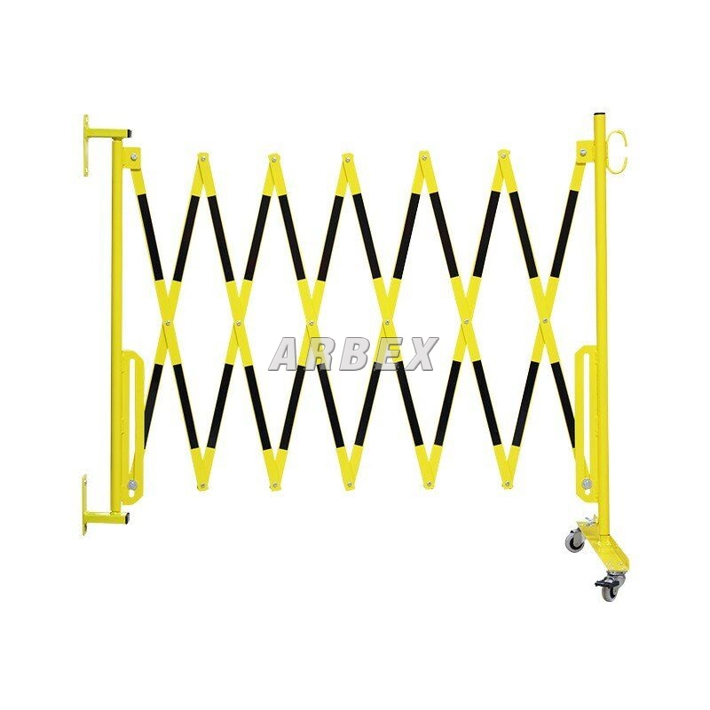 Černo-žlutá nástěnná bariéra. Vyrobena z vysoce kvalitní oceli. Zábrany se připevňují ke stěně pomocí příslušných držáků na konci jednoho ze sloupků. Druhá část zábrany je vybavena kolečky pro usnadnění jejího rozkládání a skládání. V nabídce jsou bíle a červeně lakované ocelové zábrany (označené z obou stran reflexní fólií) nebo žluté a černé.