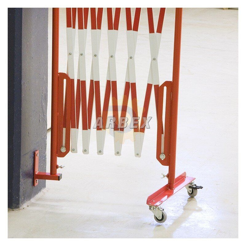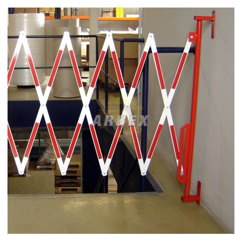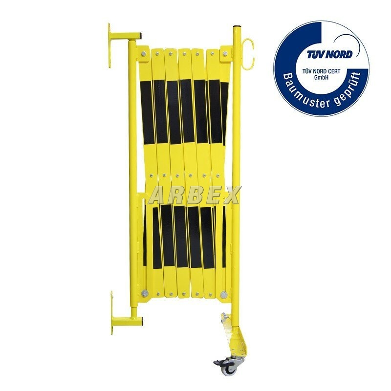 Černo-žlutá nástěnná bariéra. Vyrobena z vysoce kvalitní oceli. Zábrany se připevňují ke stěně pomocí příslušných držáků na konci jednoho ze sloupků. Druhá část zábrany je vybavena kolečky pro usnadnění jejího rozkládání a skládání. V nabídce jsou bíle a červeně lakované ocelové zábrany (označené z obou stran reflexní fólií) nebo žluté a černé.