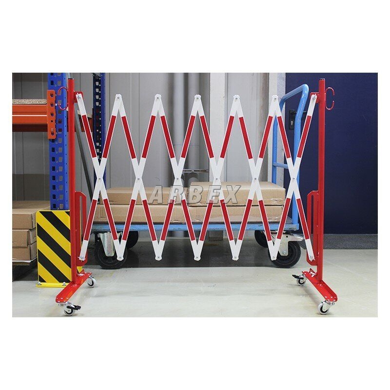 Bílo-červená bariéra s kolečky. Vyrobena z vysoce kvalitní oceli. Kolečka zábrany jsou opatřena ručním zámkem, který umožňuje zachovat vhodnou délku výrobku. V nabídce jsou bíle a červeně lakované ocelové zábrany (označené z obou stran reflexní fólií) nebo žluté a černé.