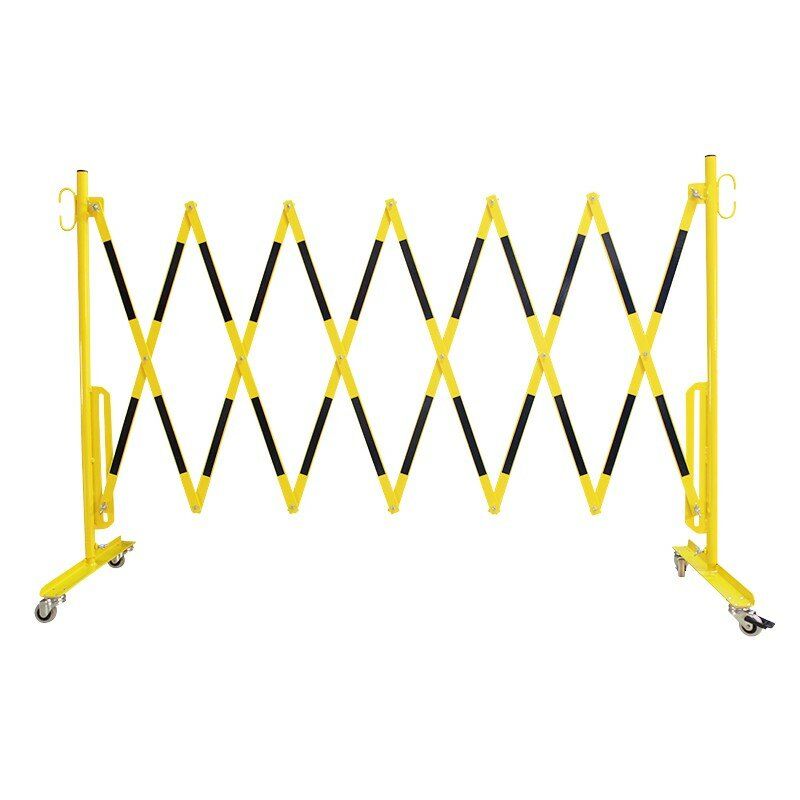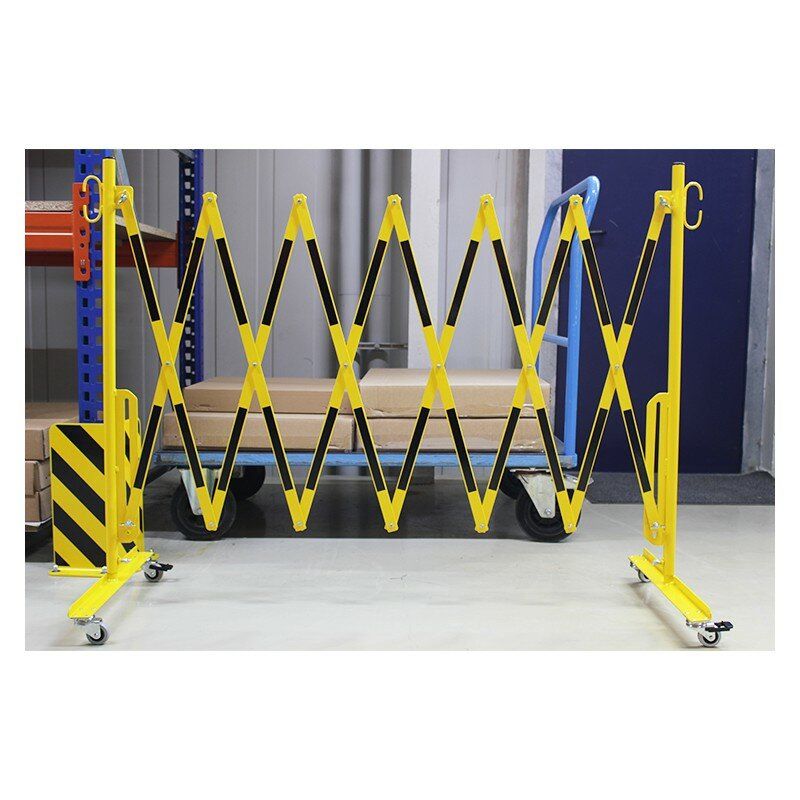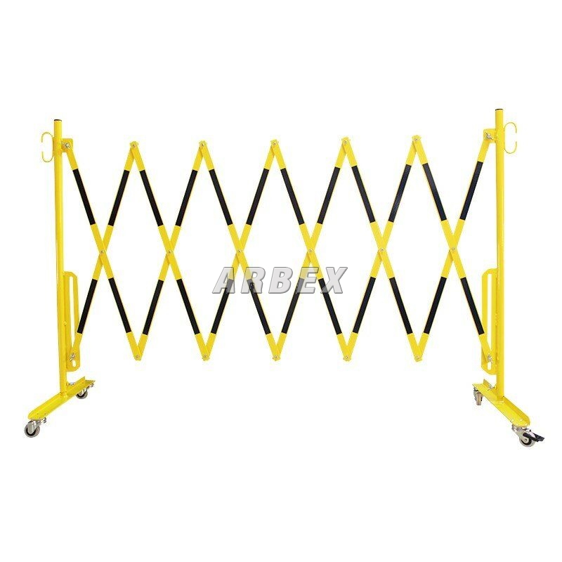 Žluto-černá bariéra s kolečky. Vyrobena z vysoce kvalitní oceli. Kolečka zábrany jsou opatřena ručním zámkem, který umožňuje zachovat vhodnou délku výrobku. V nabídce jsou bíle a červeně lakované ocelové zábrany (označené z obou stran reflexní fólií) nebo žluté a černé.