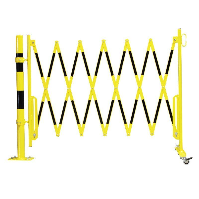 Černo-žlutá bariéra se sloupkem. Vyrobena z vysoce kvalitní oceli. Skládací zábrana je vybavena pojízdným sloupkem s kolečky. V nabídce jsou bíle a červeně lakované ocelové zábrany (označené z obou stran reflexní fólií) nebo žluté a černé.
