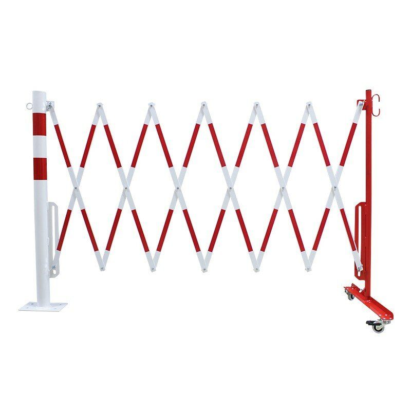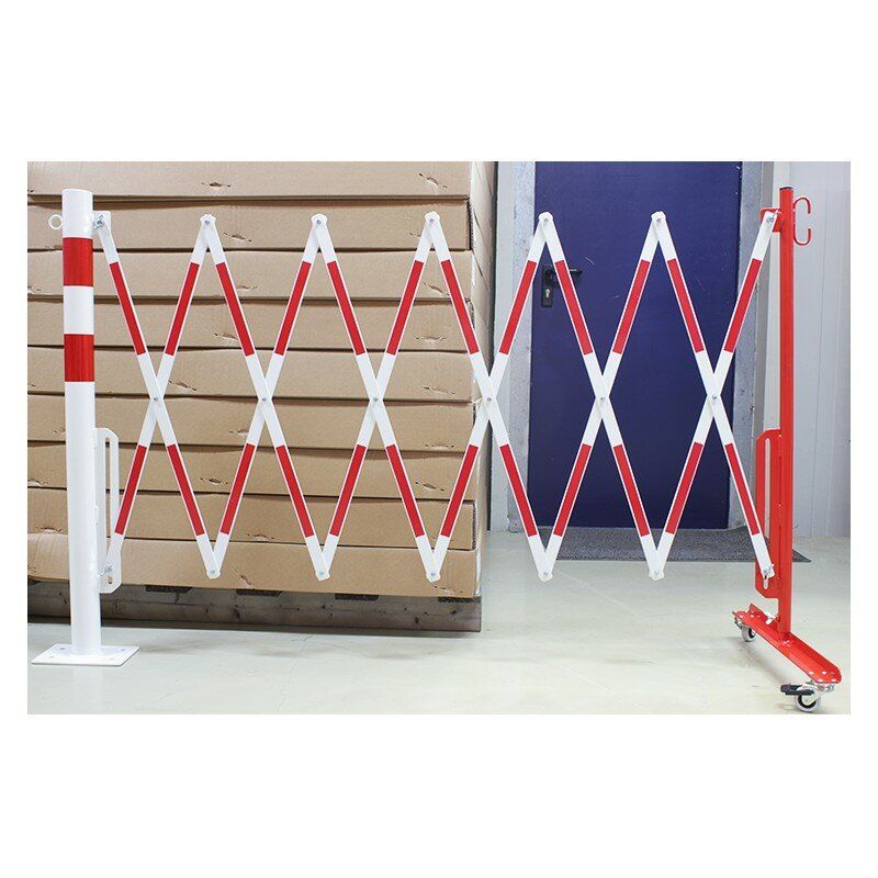Bílo-červená bariéra se sloupkem. Vyrobena z vysoce kvalitní oceli. Skládací zábrana je vybavena pojízdným sloupkem s kolečky. V nabídce jsou bíle a červeně lakované ocelové zábrany (označené z obou stran reflexní fólií) nebo žluté a černé.
