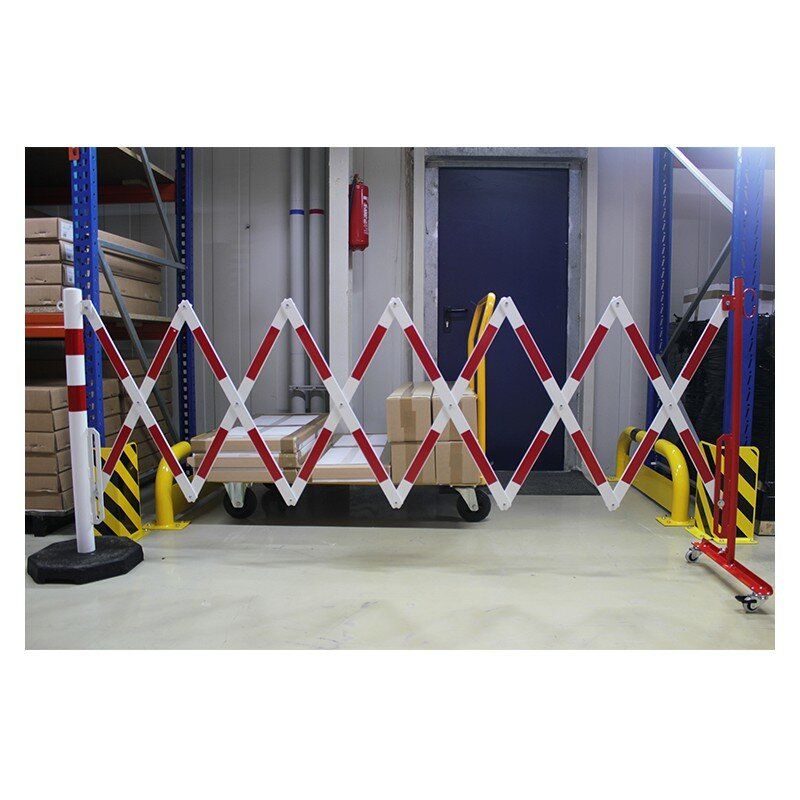 Bílo-červená sloupková přenosná mobilní zábrana je vyrobena z vysoce kvalitní oceli. Skládací zábrana je vybavena pojízdným sloupkem s kolečky. V nabídce jsou bíle a červeně lakované ocelové zábrany (označené z obou stran reflexní fólií) nebo žluté a černé.