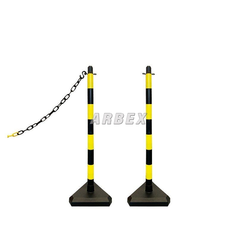 Černo-žlutý plastový vymezovací sloupek s betonovou základnou. Snadno se přenášejí a přepravují. V nabídce jsou bílo-červené nebo žluto-černé. Plastový řetízek se na čepici připevňuje odříznutím posledního článku (zářez umožňuje provlečení segmentu řetízku uzavřeným okem čepice) nebo dodatečně pomocí spojky "S". Řetěz lze zkrátit na libovolnou délku. Toto balení obsahuje pouze jeden sloupek.