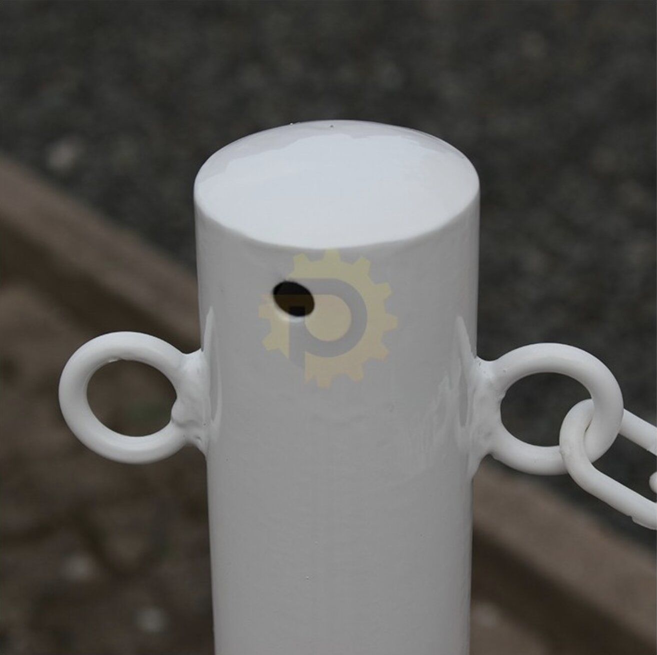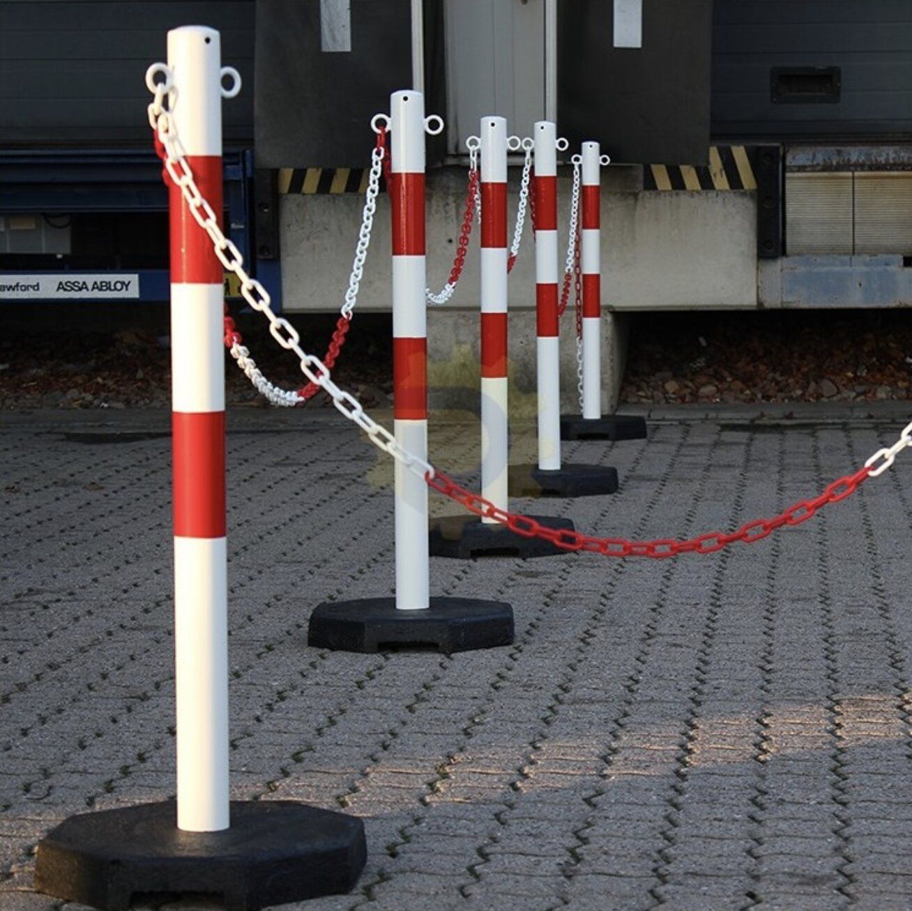Červeno-bílý plastový vymezovací sloupek se zatíženou pryžovou podložkou. Dělicí sloupky se prodávají v sadách: šest kusů ocelových sloupků O60 mm s patkami a pět částí řetězů o celkové délce 25 m (maximální rozteč páru sloupků je 5 m). V nabídce jsou sloupky s řetízkem v bílo-červené nebo žluto-černé barvě. Plastový řetízek se na čepici připevňuje odříznutím posledního článku (zářez umožňuje provlečení segmentu řetízku uzavřeným okem čepice) nebo dodatečně pomocí spojky S . Oddělovací sloupky umožňují snadno a rychle oddělit dočasné zóny. Řetěz lze zkrátit na libovolnou délku.