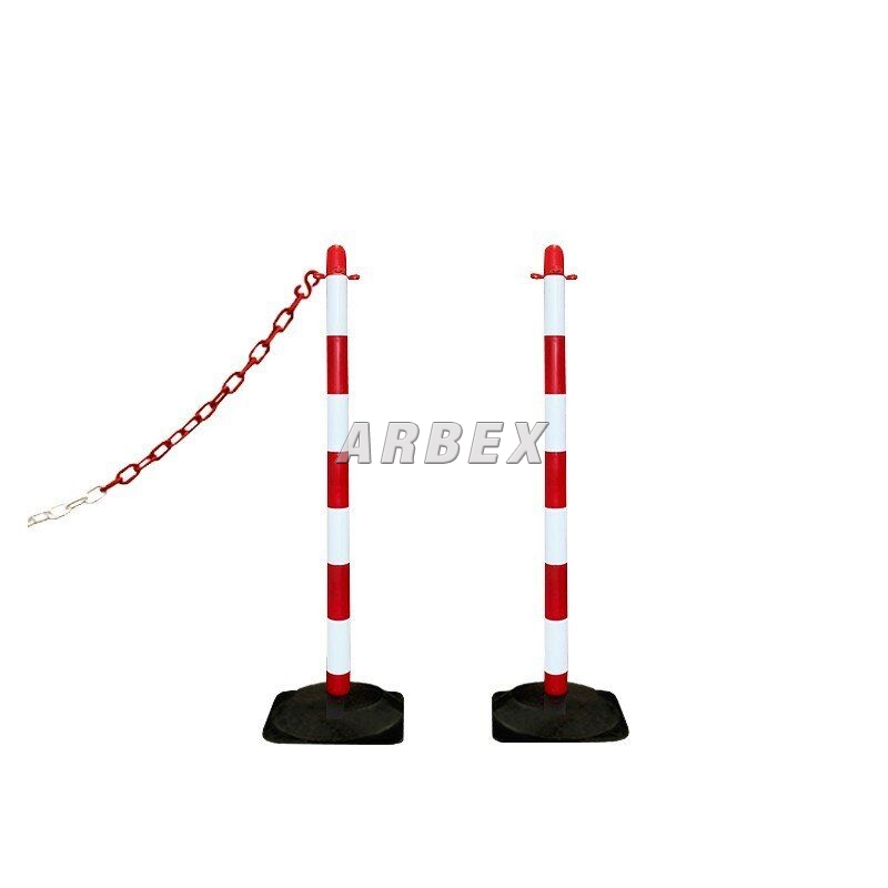 Bílo-červený vymezovací sloupek s gumovou základnou. Snadno se přenášejí a přepravují. V nabídce jsou sloupky v bílo-červené nebo žluto-černé barvě. Spodní část základny je čtvercová, horní je kruhová. Plastový řetízek by měl být připojen k oku uzávěru šroubením ve tvaru "S". Řetěz lze zkrátit na libovolnou délku. Toto balení obsahuje pouze jeden sloupek.