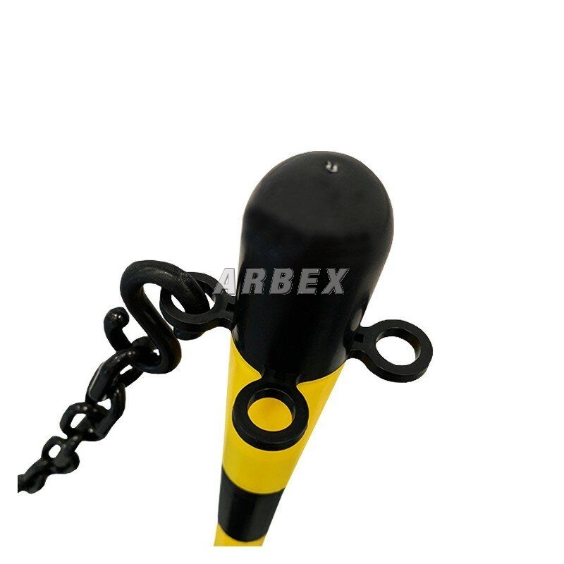 Černo-žlutý vymezovací sloupek s gumovou základnou. Snadno se přenášejí a přepravují. V nabídce jsou sloupky v bílo-červené nebo žluto-černé barvě. Spodní část základny je čtvercová, horní je kruhová. Plastový řetízek by měl být připojen k oku uzávěru šroubením ve tvaru "S". Řetěz lze zkrátit na libovolnou délku. Toto balení obsahuje pouze jeden sloupek.