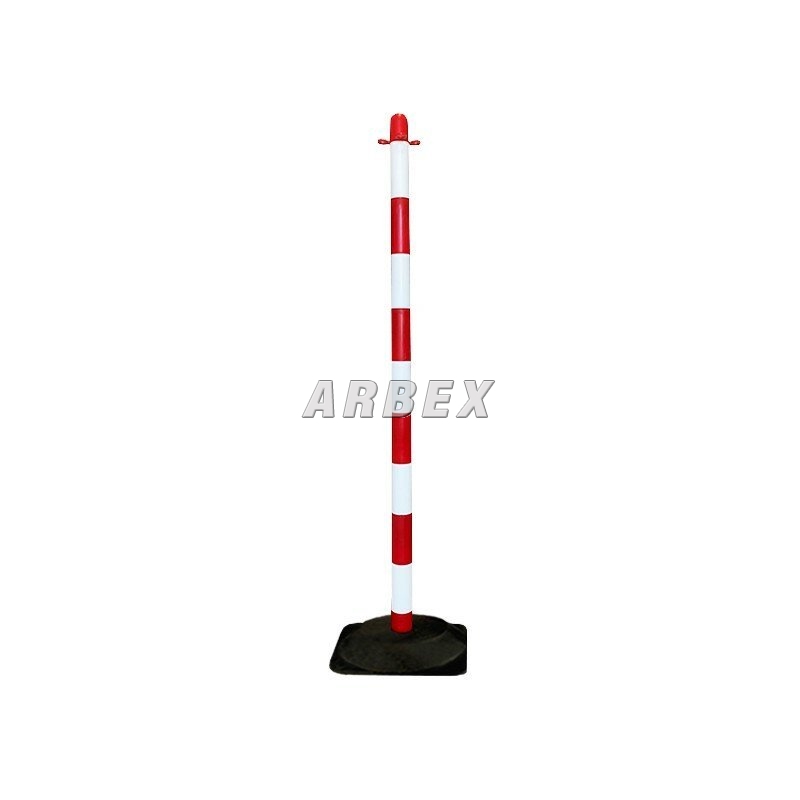 Bílo-červený vymezovací sloupek s gumovou základnou. Snadno se přenášejí a přepravují. V nabídce jsou sloupky v bílo-červené nebo žluto-černé barvě. Spodní část základny je čtvercová, horní je kruhová. Plastový řetízek by měl být připojen k oku uzávěru šroubením ve tvaru "S". Řetěz lze zkrátit na libovolnou délku. Toto balení obsahuje pouze jeden sloupek.