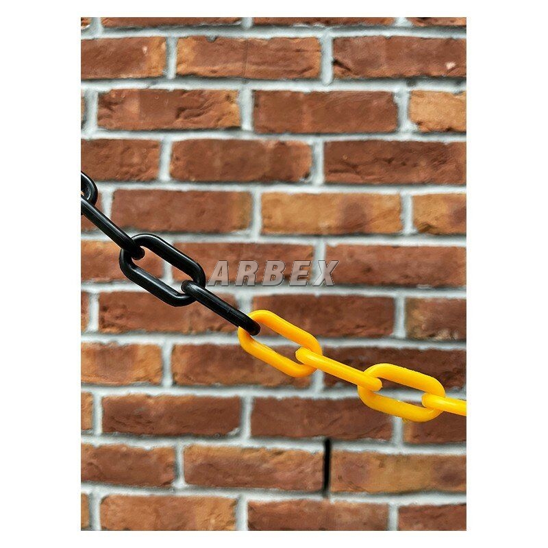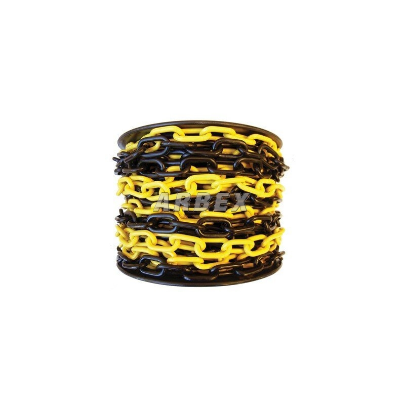Černo-žlutý plastový označovací řetěz pro vymezovací sloupky. Snadno se přenášejí a přepravují. Jde o účinné značení a ochranu výkopů, silničních prací, pracovišť, dočasně uzavřených, oddělených prostor. Černo-žlutý řetěz má tloušťku článku: O8 mm.