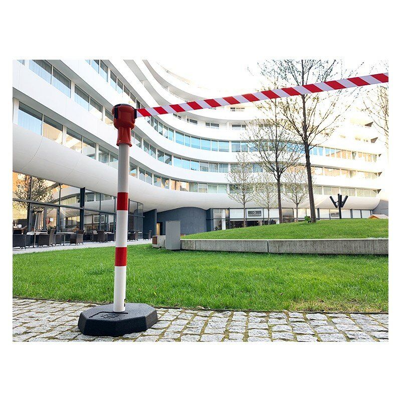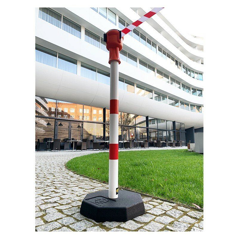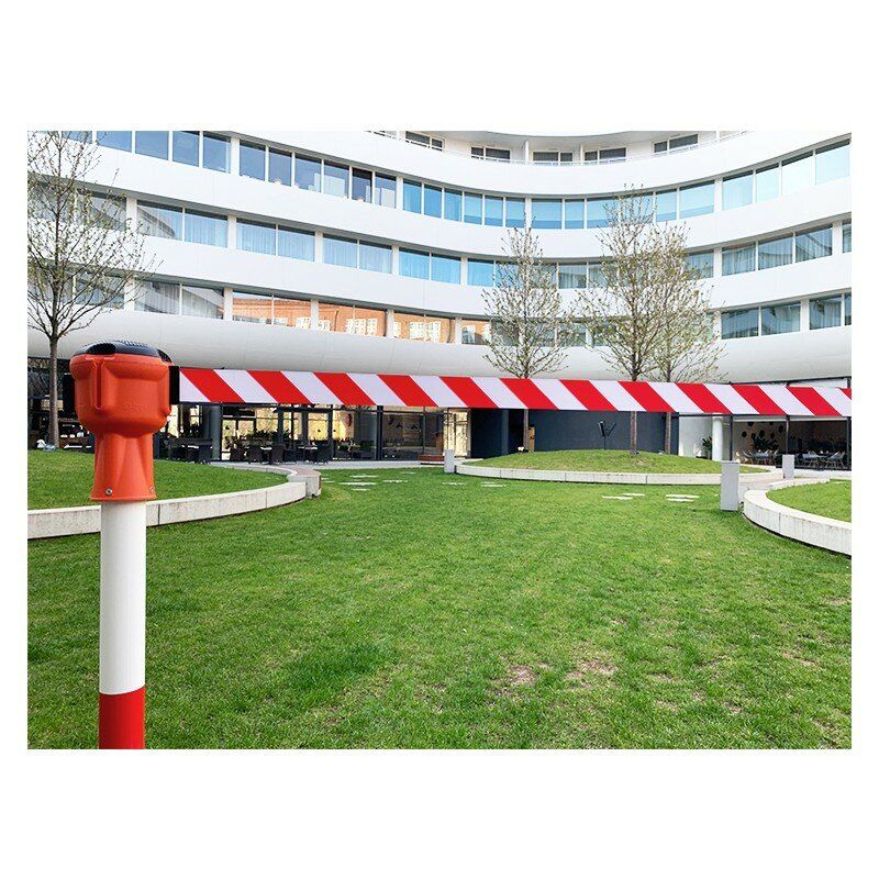 Průmyslové pásové ocelové sloupky s hlavou Skipper, oddělují dočasné zóny ve výrobních závodech, skladech a prostorech, pro výkladku a nákladku, zboží. Používají se také na staveništích, parkovištích a letištních terminálech. Ocelové výstražné sloupky mají širokou gumovou základnu. Vyztužený pásek dosahuje délky 9m.