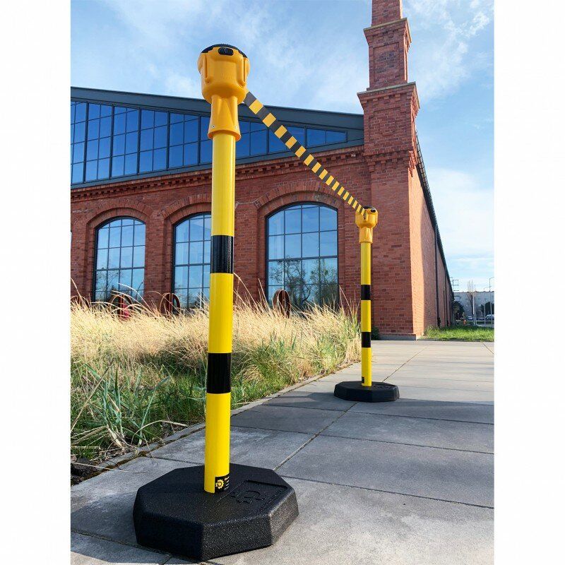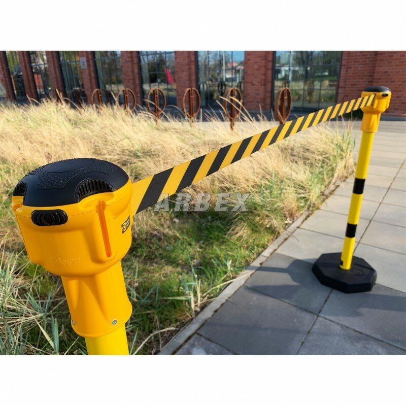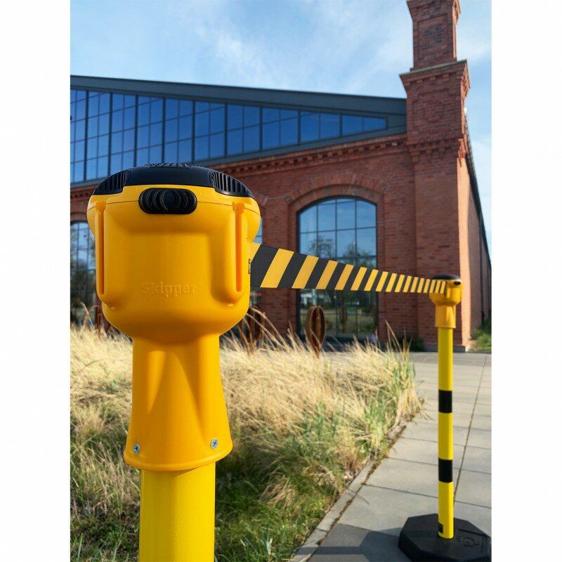Průmyslové pásové ocelové sloupky s hlavou Skipper, oddělují dočasné zóny ve výrobních závodech, skladech a prostorech, pro výkladku a nákladku, zboží. Používají se také na staveništích, parkovištích a letištních terminálech. Ocelové výstražné sloupky mají širokou gumovou základnu. Vyztužený pásek dosahuje délky 9m.
