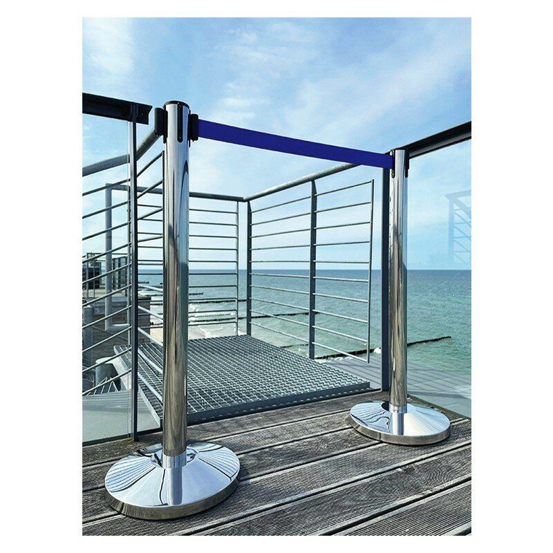 Plotové sloupky QueueWay s páskou jsou vyrobeny z vysoce kvalitní oceli, jsou odolné proti promáčknutí a poškrábání. V nabídce jsou tyče s chromovým povrchem se zrcadlovým efektem a práškovou barvou (černá). Výrobky se vyznačují moderní formou, precizností a estetikou zpracování. Zatížená základna zaručuje odpovídající stabilitu sloupků. Je navíc vybaven pryžovým pláštěm, který chrání povrch před poškrábáním.