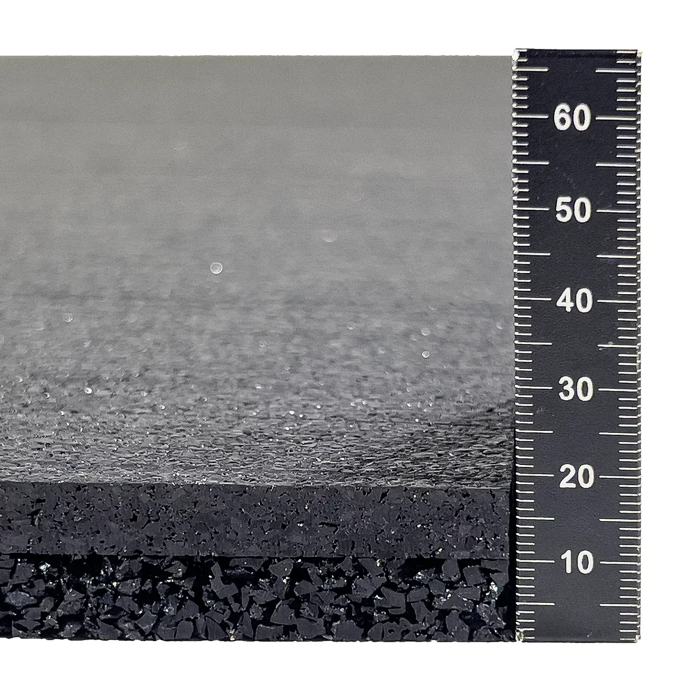 Spodní část: Pryžová antivibrační elastomerická deska vyrobená ze směsi pryžového granulátu SBR a polyuretanového pojiva. Tato antivibrační pryžová deska má široké využití jako univerzální tlumící, protihluková a antivibrační deska.