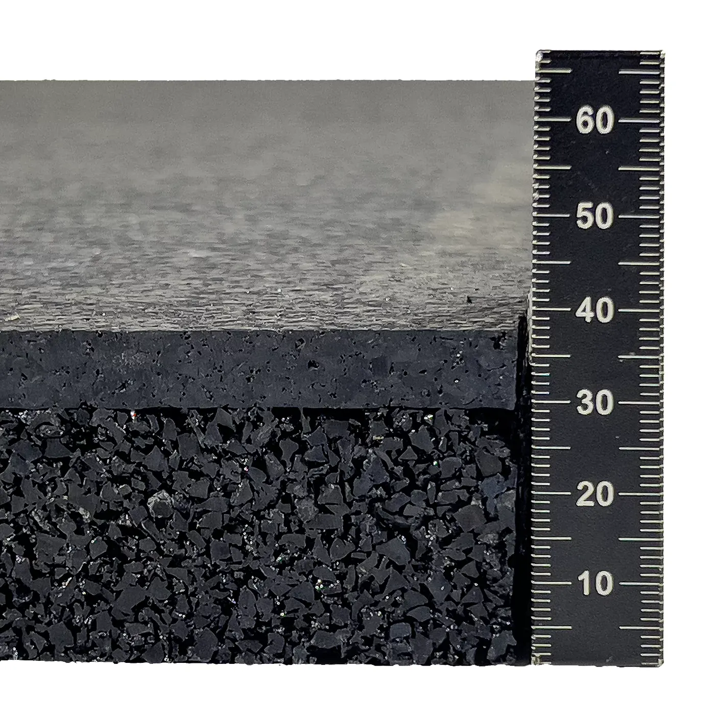 Podlahová guma (deska) SF1050 s antivibrační elastomerickou deskou S650. Kombinace fitness desky a antivibrační desky využijete především v místech kde potřebujete odolný povrch a zároveň odtlumení vibrací. Obě desky naleznete v naší nabídce samostatně, nicméně tímto vhodným spojením získáte vlastnosti obou desek v jednom balení.