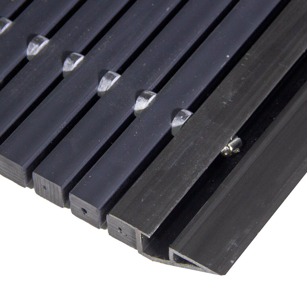 Na přední straně rohože je připevněna nájezdová hliníková lišta zabraňující zakopnutí a případný pohodlný přejezd vozíků nebo kočárků. Vstupní rohož je možné omývat vysokotlakou vodou a v případě potřeby srolovat.