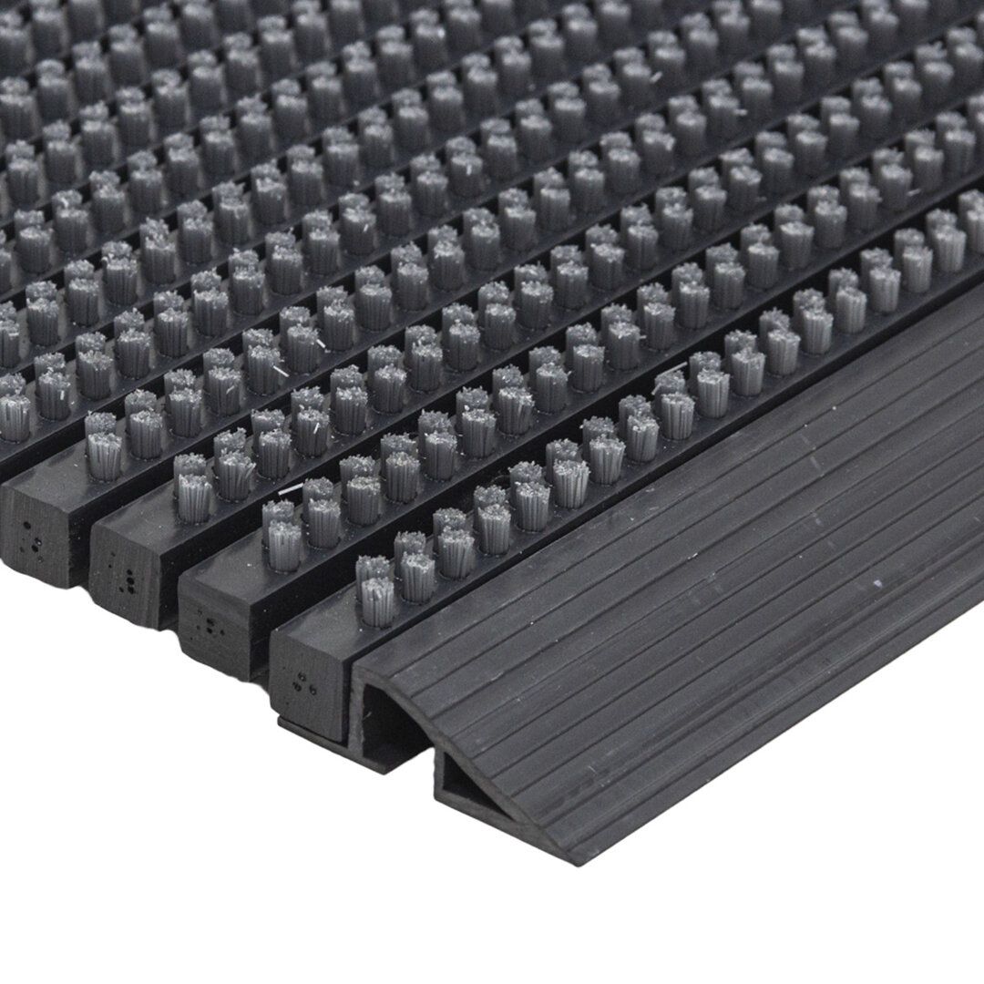 Na přední straně rohože je připevněna nájezdová hliníková lišta zabraňující zakopnutí a případný pohodlný přejezd vozíků nebo kočárků. Vstupní rohož je možné omývat vysokotlakou vodou a v případě potřeby srolovat.
