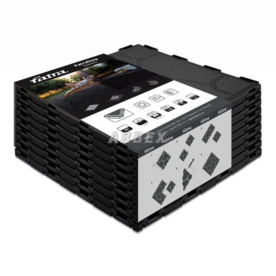 Plastové dlaždice FATRASTEP Slateris jsou určeny pro terasy, balkóny nebo okolo bazénů. Napodobují dezén kamene. Dlaždice je velmi snadné a rychlé poskládat i demontovat. Díky postranním háčkům je možné dlaždice navzájem spojovat. Dlaždice jsou vyrobeny z polypropylenu, odolávají tedy olejům a rozpouštědlům. Jednotlivé díly do sebe stačí jen zacvaknout a je hotovo. Pokládka Vám v menších prostorech nezabere více než pár desítek minut. Balení obsahuje 9 dlaždic (0,81m2).