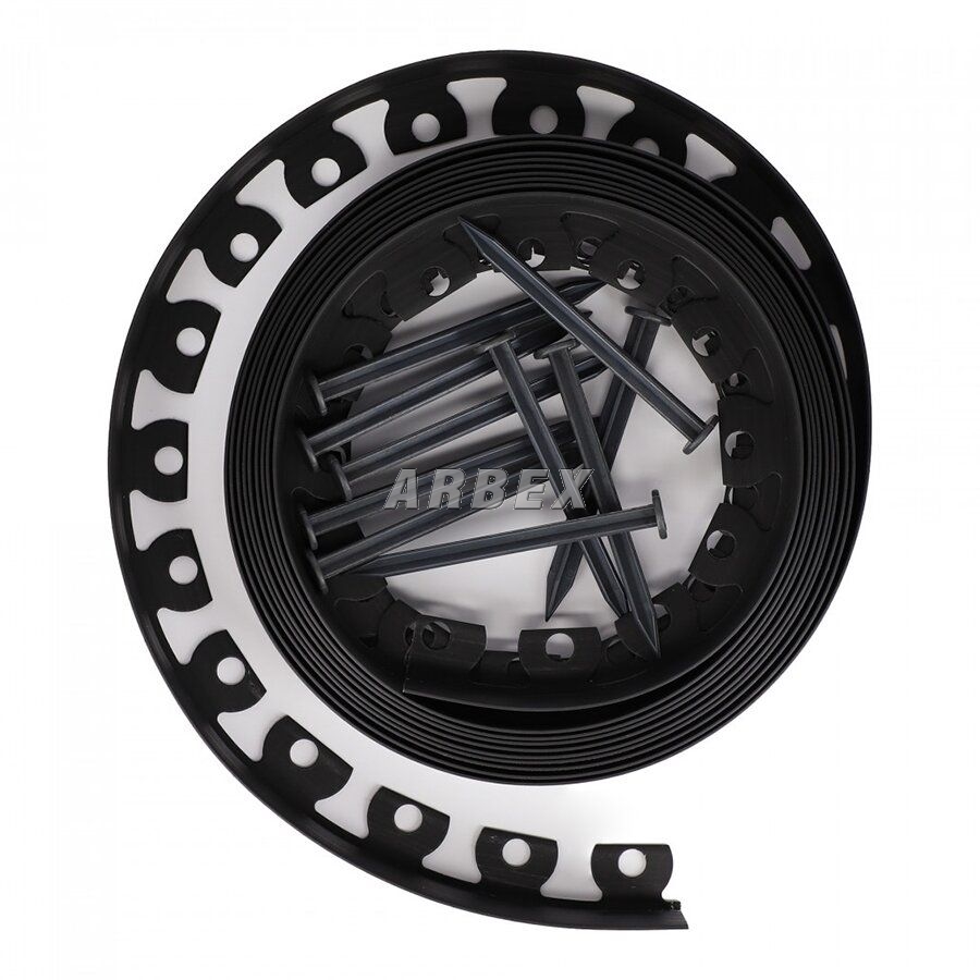 Plastový zahradní obrubník v roli 10 m se sadou 20 kotev o délce 18cm. Flexibilní lemování z vysoce kvalitního materiálu umožňuje vytvářet oblouky, kruhy, nebo jakýkoli jiný tvar.