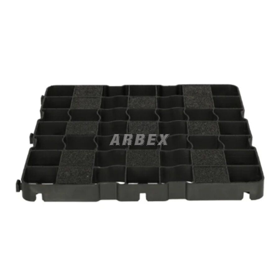 Gumová kostka se snadno instaluje do zatravnovací dlažby N40, vhodná pro zvýraznění parkovacích pruhů a dalších dopravních zóna pomáhá udržovat trávu v rámci dlažby. Má speciální tvar, který umožňuje zabraňovat pohybu dlažby a pomáhá udržovat stabilitu podloží. Díky svému odolnému materiálu gumová kostka snadno odolává poškození způsobenému vysokou zátěží a může být použita v různých klimatických podmínkách.
