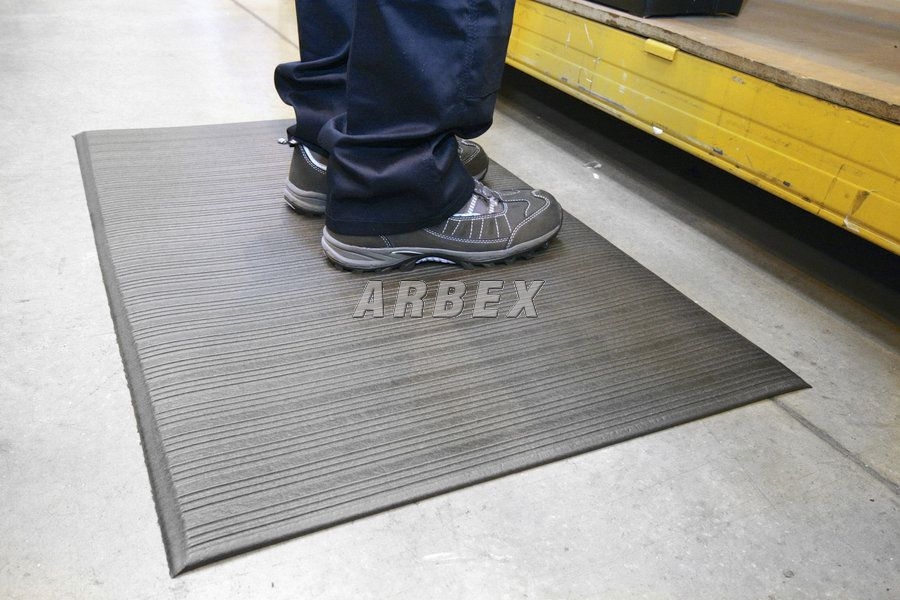 PVC průmyslová protiúnavová rohož s vyvýšeným rýhovaným povrchem eliminujícím riziko uklouznutí.