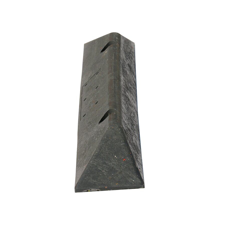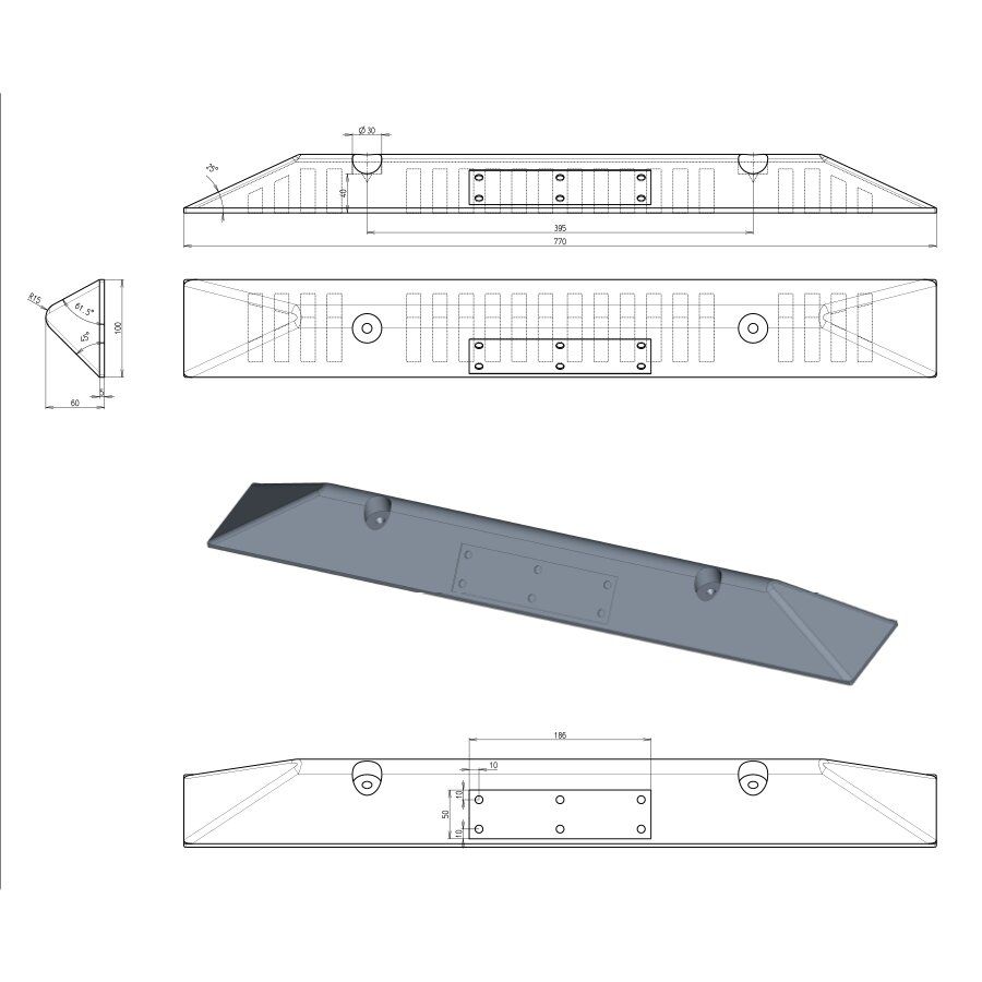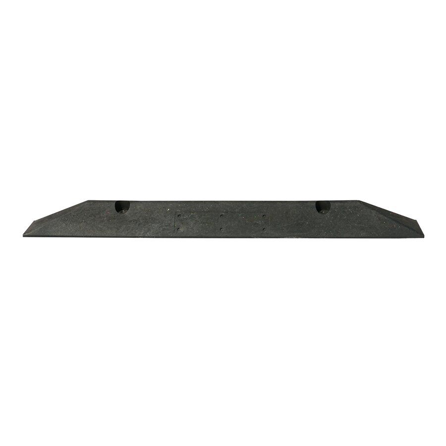 Doraz je vyroben z vysoce odolného tvrzeného plastu, který vyniká vynikající chemickou stálostí vůči olejům, pohonným hmotám i posypovým solím. Materiál je nesnadno hořlavý a plně odolný vůči UV záření, což zaručuje jeho dlouhou životnost bez ztráty mechanických vlastností. Nízká hmotnost 2,5 kg usnadňuje manipulaci, zatímco robustní profil o výšce 6 cm bezpečně zastaví osobní i menší užitkové vozy, aniž by hrozilo poškození moderních nízkých podvozků.