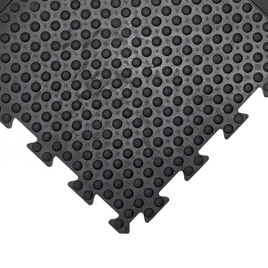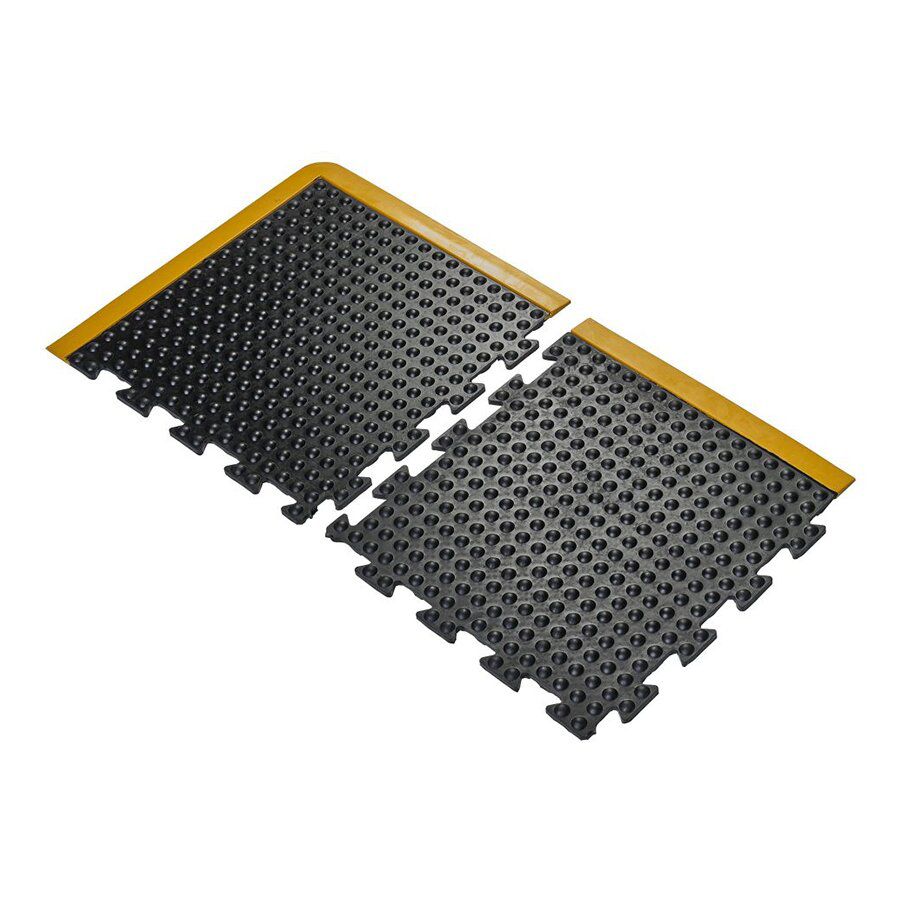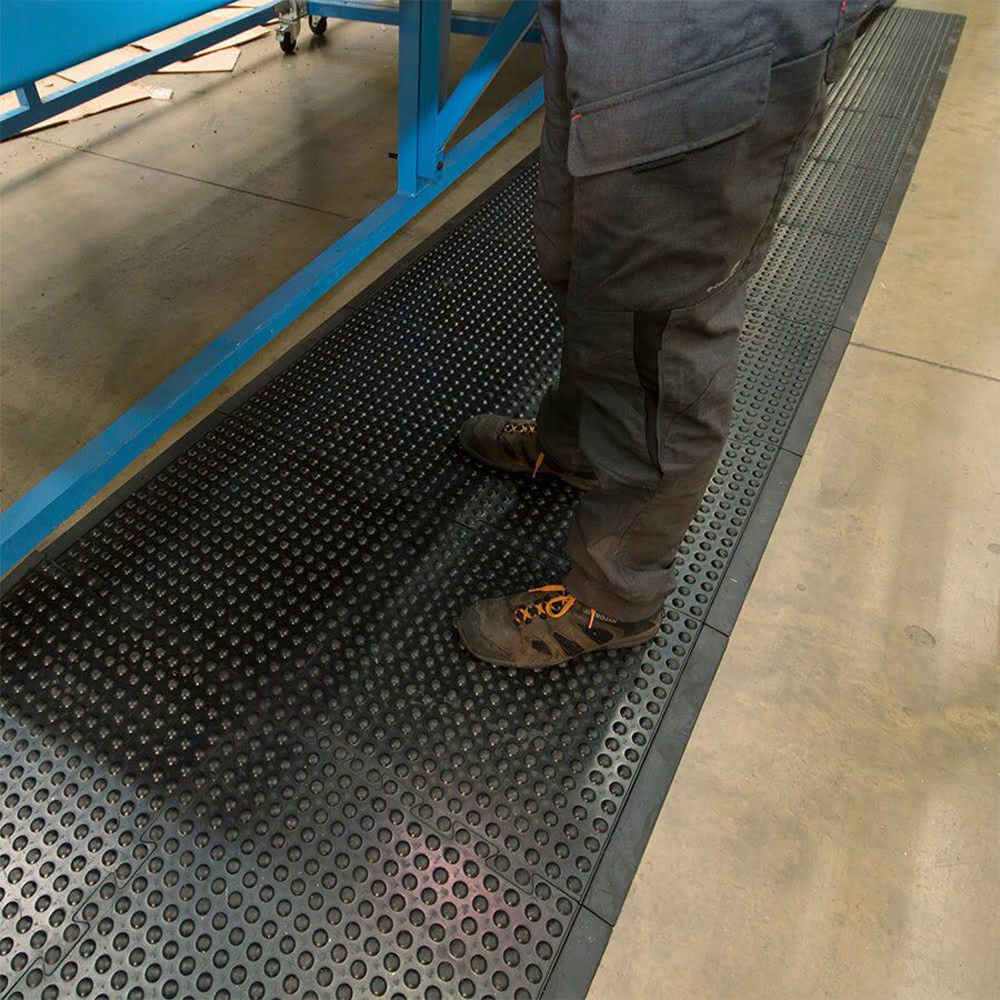 Dlažba je vyráběná ze směsi pružné a tuhé přírodní gumy. Bublinkový povrch stimuluje krevní oběh v chodidlech, nohách a celém těle. Dlažba izoluje pracovníky od chladu z betonových podlah.