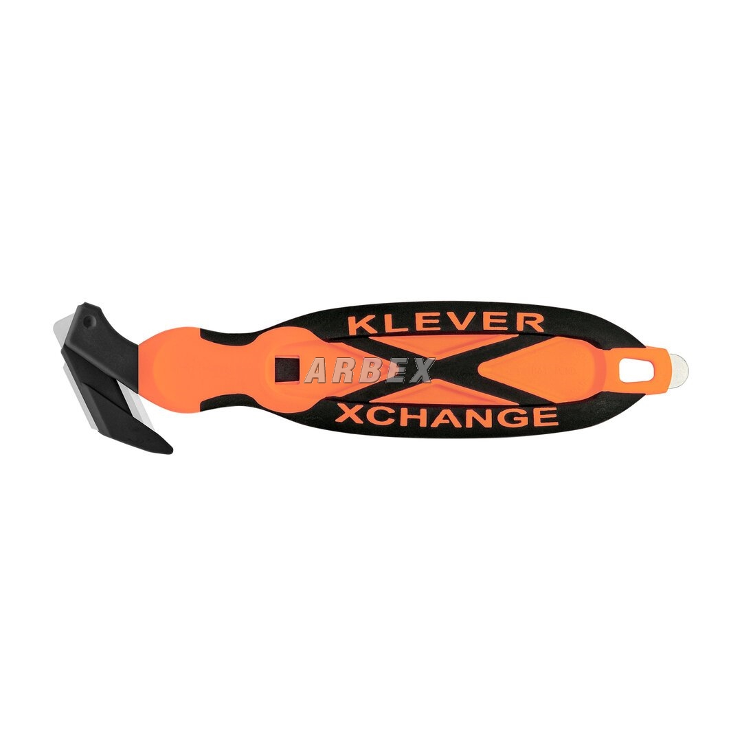 Bezpečnostní nůž KLEVER XCHANGE je kvalitní a spolehlivý nástroj pro řezání pásky, plastové pásky, krabic, fólie atd. Jeho hlavní výhodou je jednoduchý a bezpečný mechanismus výměny nožů, díky kterému lze rychle a snadno měnit opotřebované čepele.