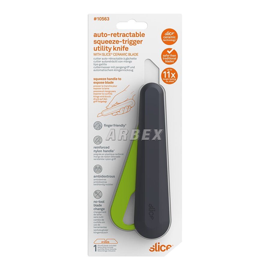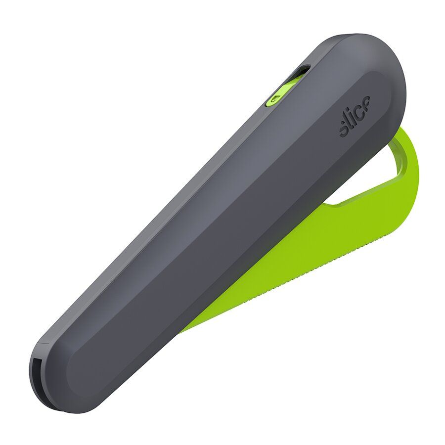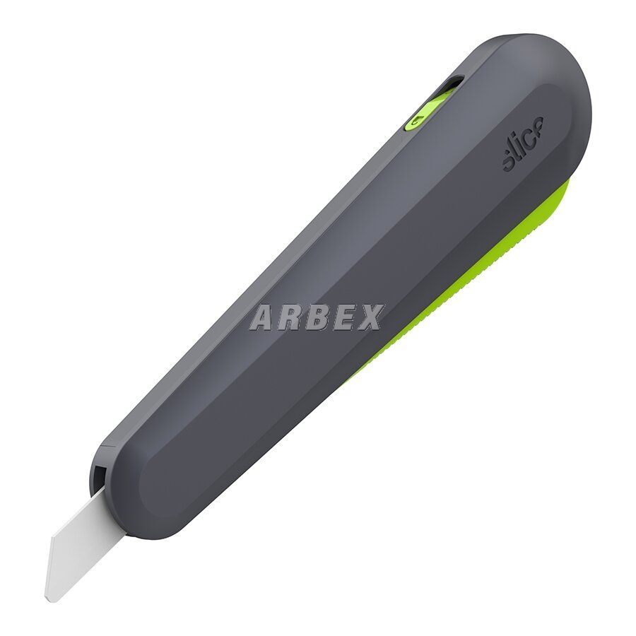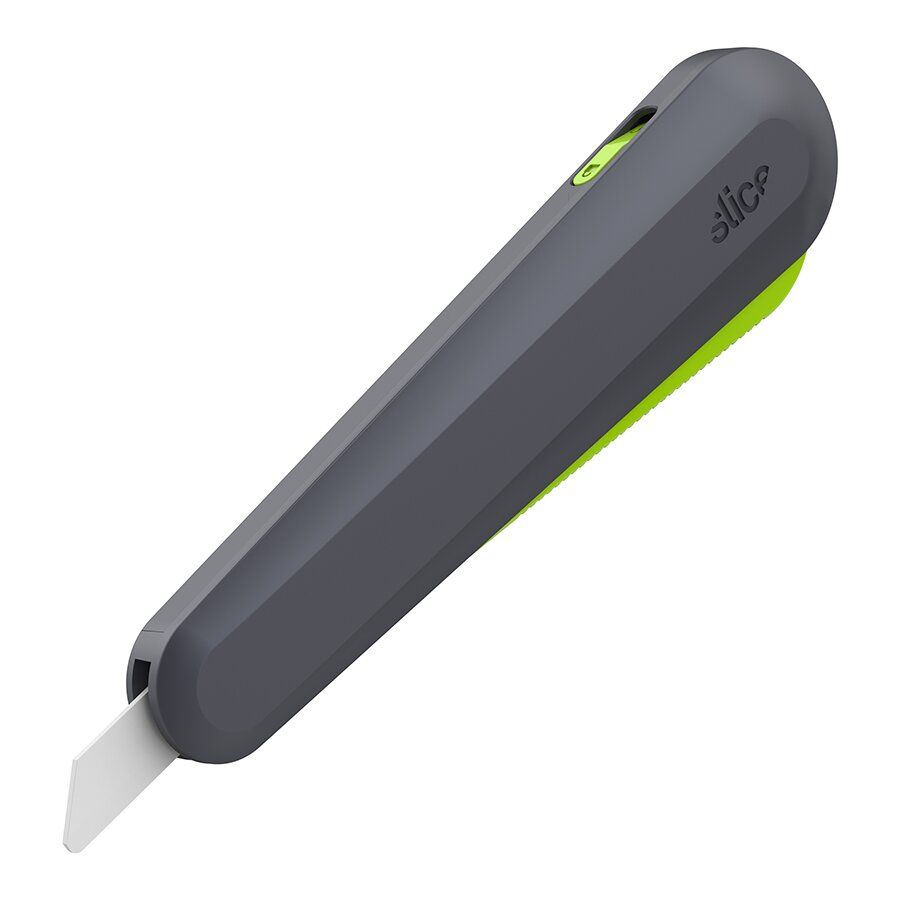 Samo-zatahovací univerzální nůž s páčkou poskytuje veškerou bezpečnost našich finger-friendly čepelí. Všechny čepele Slice mají speciální ostří, které efektivně řeže a zároveň je bezpečné na dotyk, takže se nemusíte bát závažných poranění. Uzamykací funkce zabraňuje vysunutí čepele, když se nůž nepoužívá.