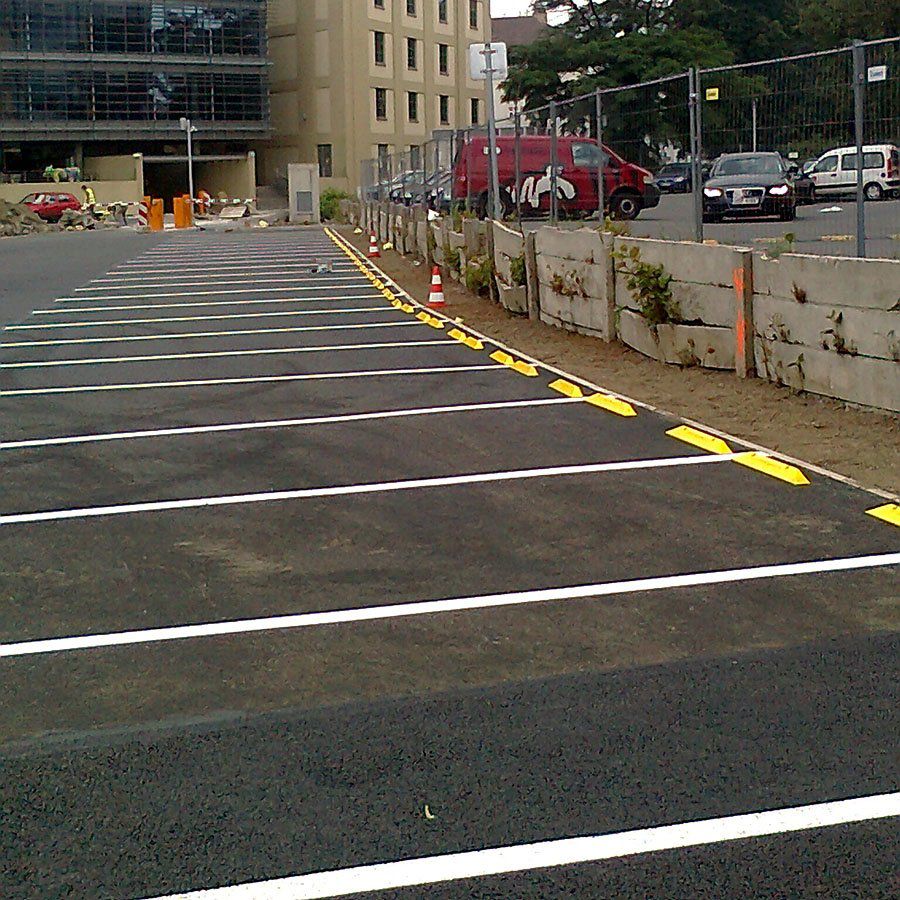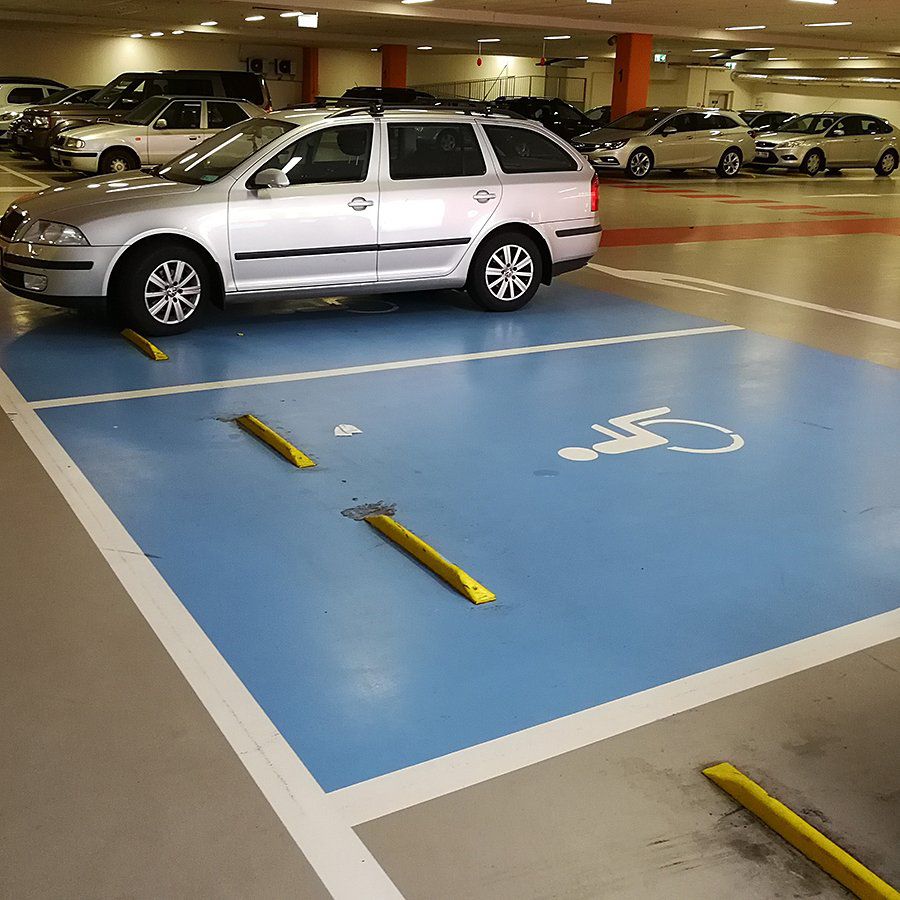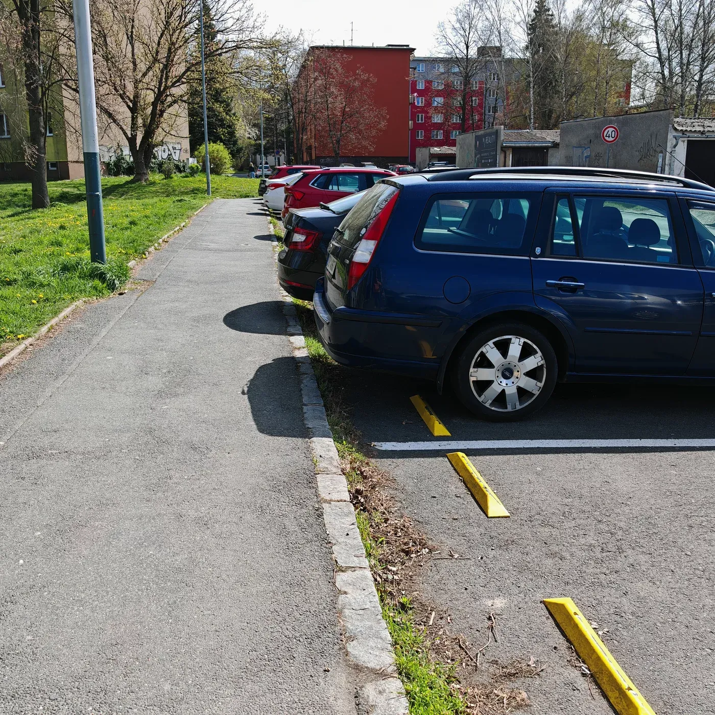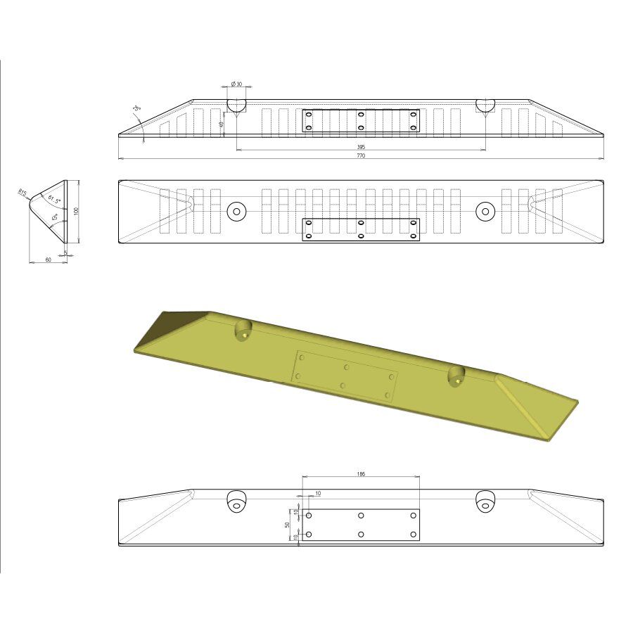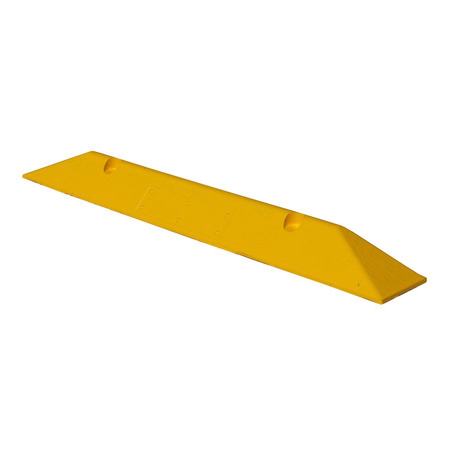Doraz je vyroben z vysoce odolného tvrzeného plastu, který vyniká vynikající chemickou stálostí vůči olejům, pohonným hmotám i posypovým solím. Materiál je nesnadno hořlavý a plně odolný vůči UV záření, což zaručuje jeho dlouhou životnost bez ztráty mechanických vlastností. Nízká hmotnost 2,5 kg usnadňuje manipulaci, zatímco robustní profil o výšce 6 cm bezpečně zastaví osobní i menší užitkové vozy, aniž by hrozilo poškození moderních nízkých podvozků.